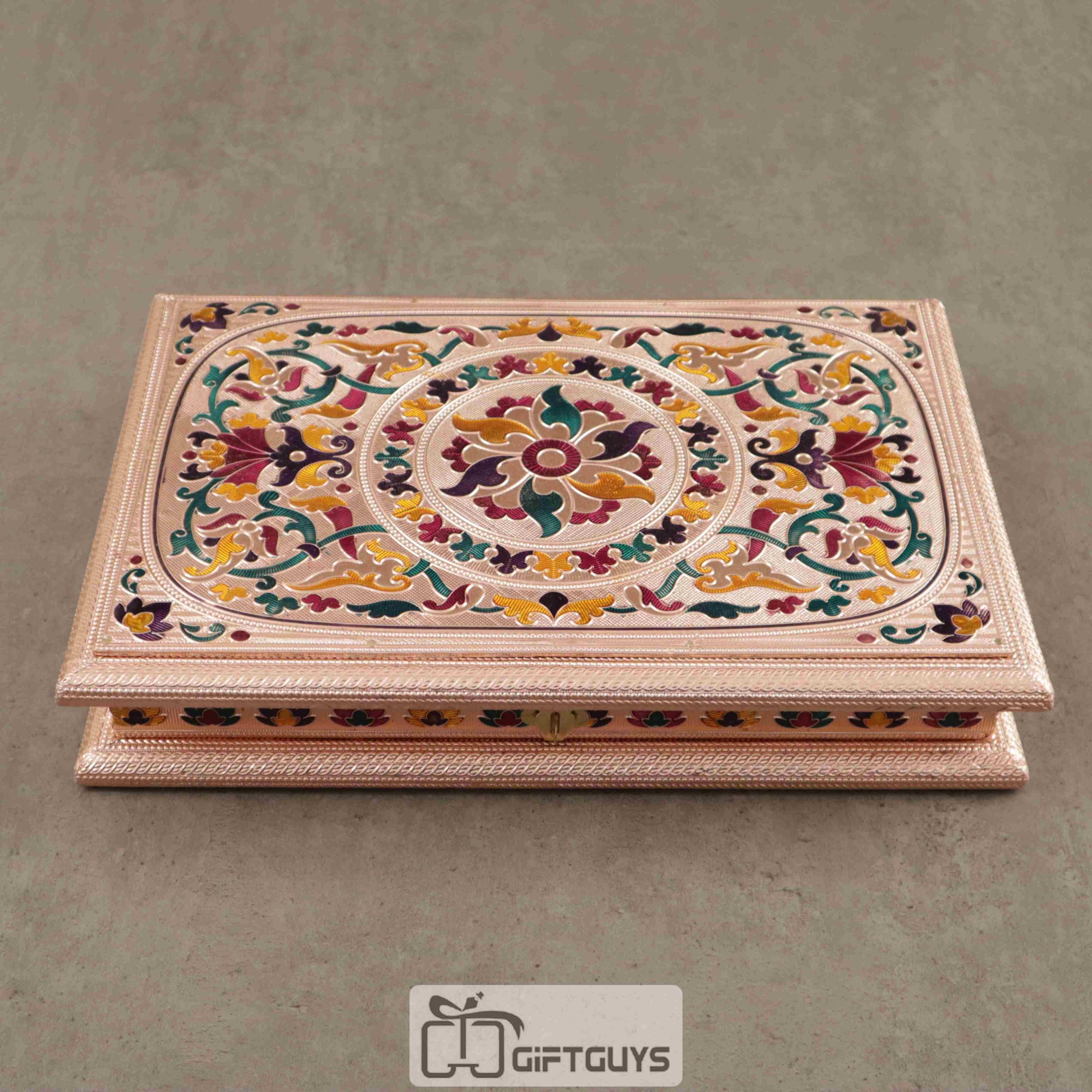 13×9 Inch Meenakari Floral Metal Gift Box with Compartments | Dry Fruit Box | Wedding Gift Box