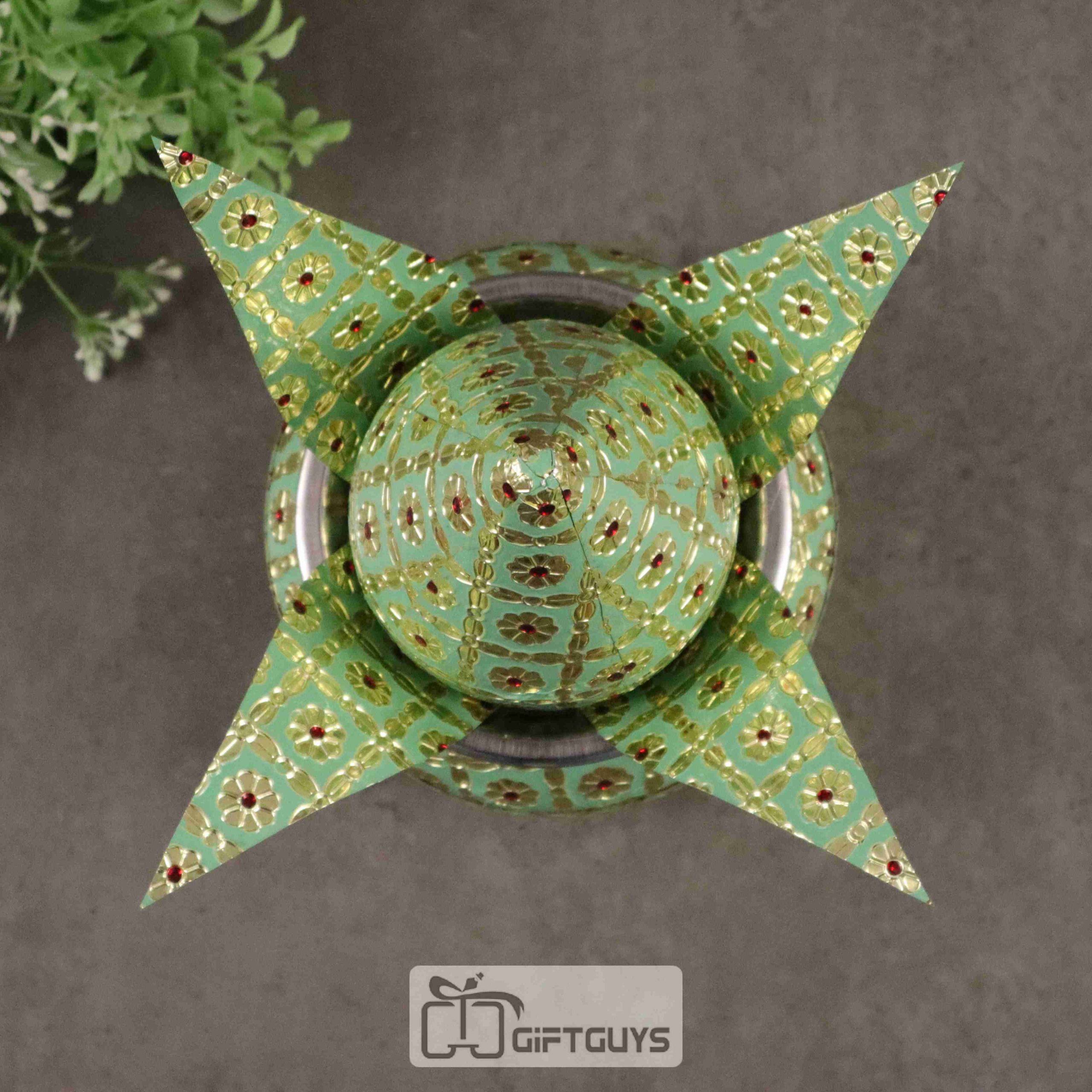 🌟 Meenakari Artwork – Handcrafted with intricate green and golden meenakari detailing and floral designs.