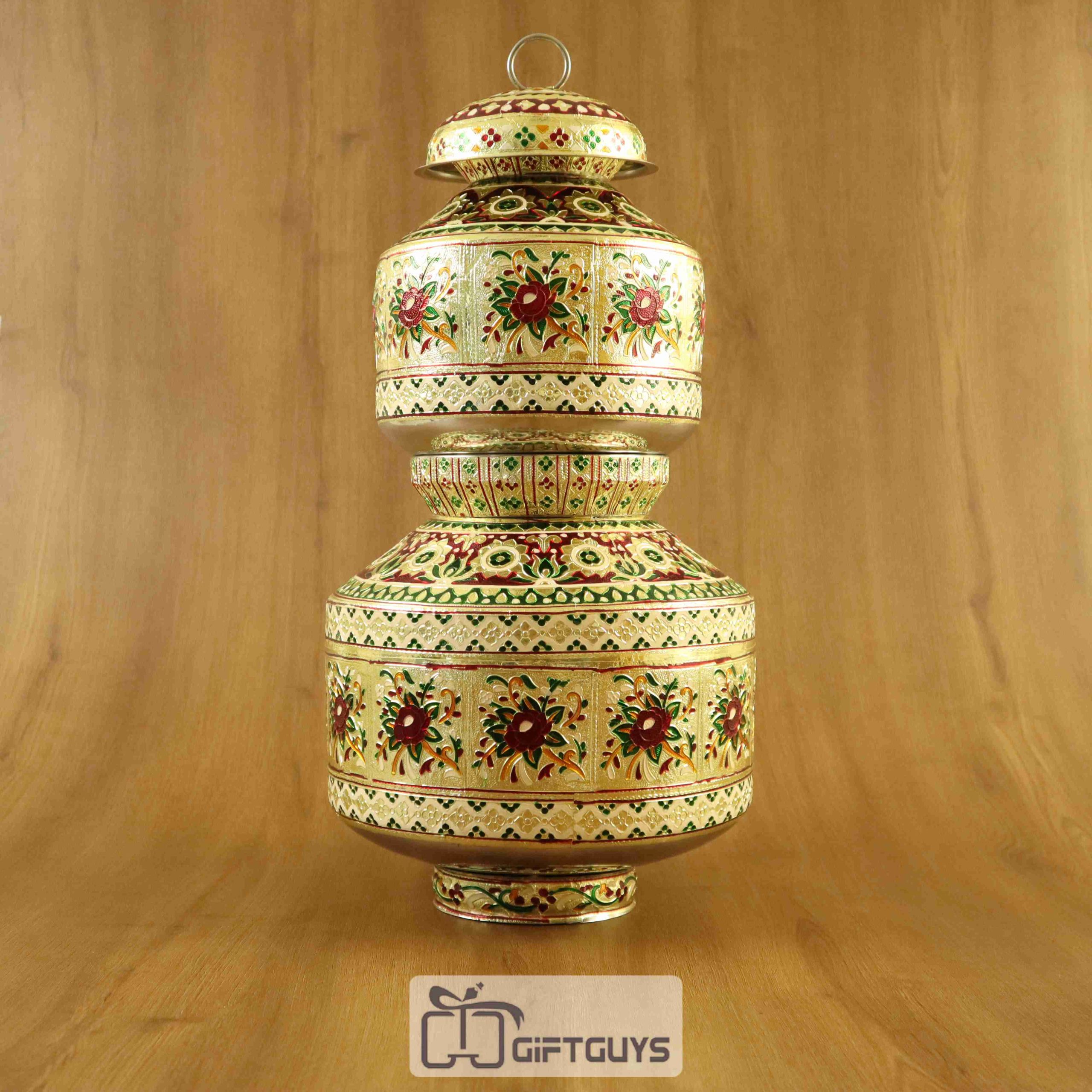 The Decorative SS Meenakari Pot Set is a stunning blend of artistry and function, perfect for enhancing any home decor. Crafted from high-quality stainless steel, each pot features intricate meenakari work, showcasing vibrant colors and traditional motifs that reflect rich cultural heritage. Ideal for serving snacks, spices, or as decorative pieces, these pots add an elegant touch to any setting. The combination of durable material and exquisite craftsmanship ensures longevity while maintaining aesthetic appeal. Whether for festive occasions or everyday use, this pot set makes a beautiful gift or a charming addition to your kitchen or dining area.