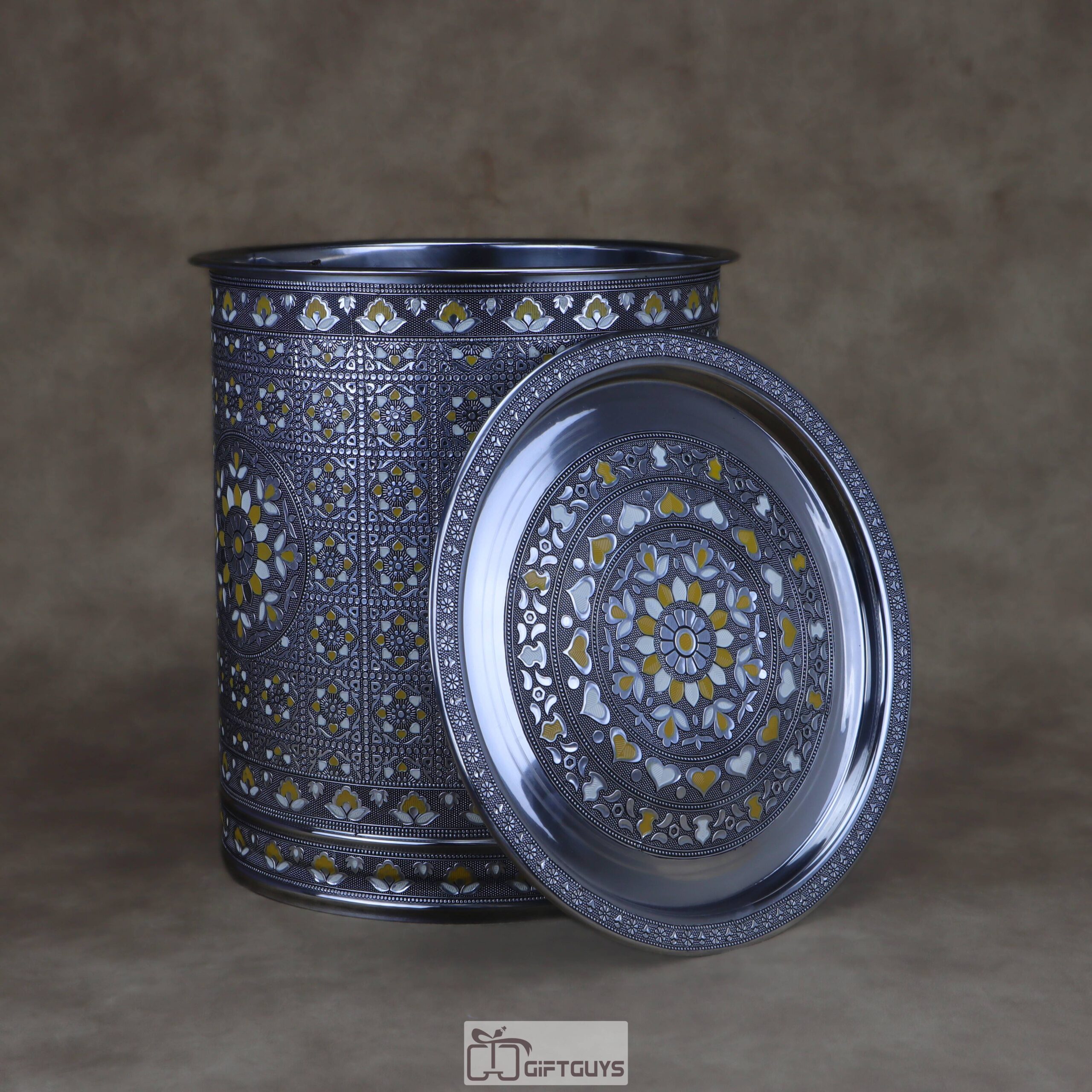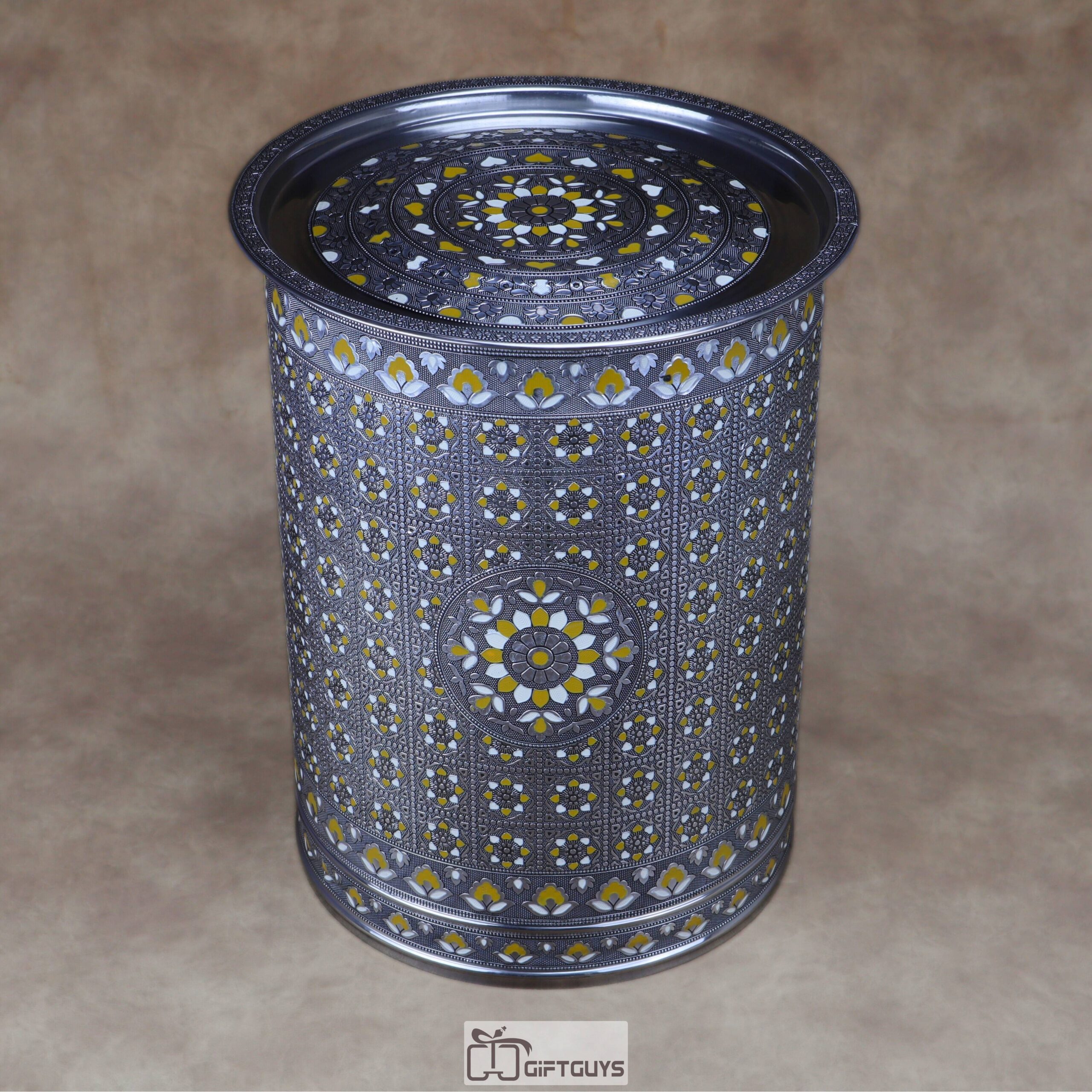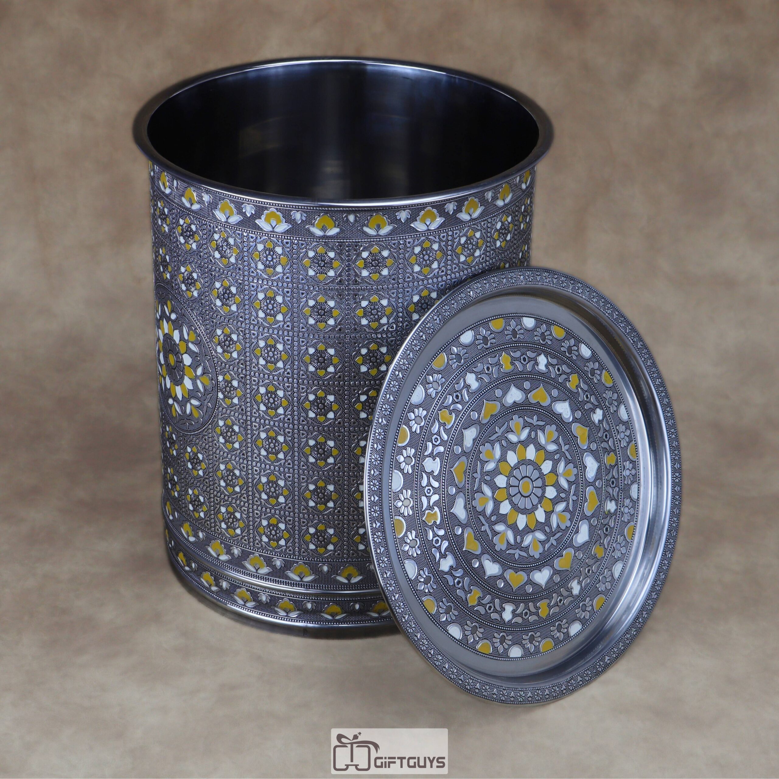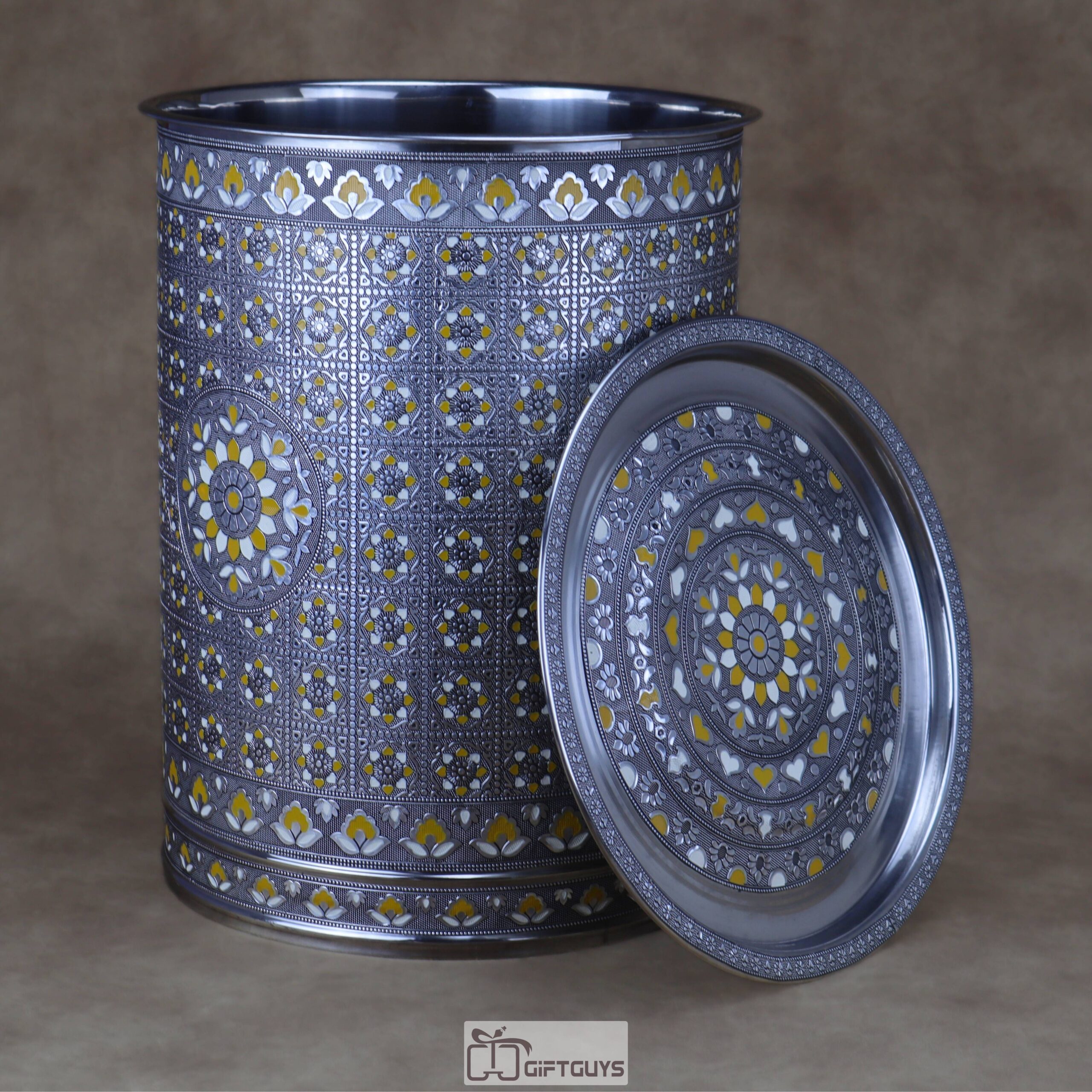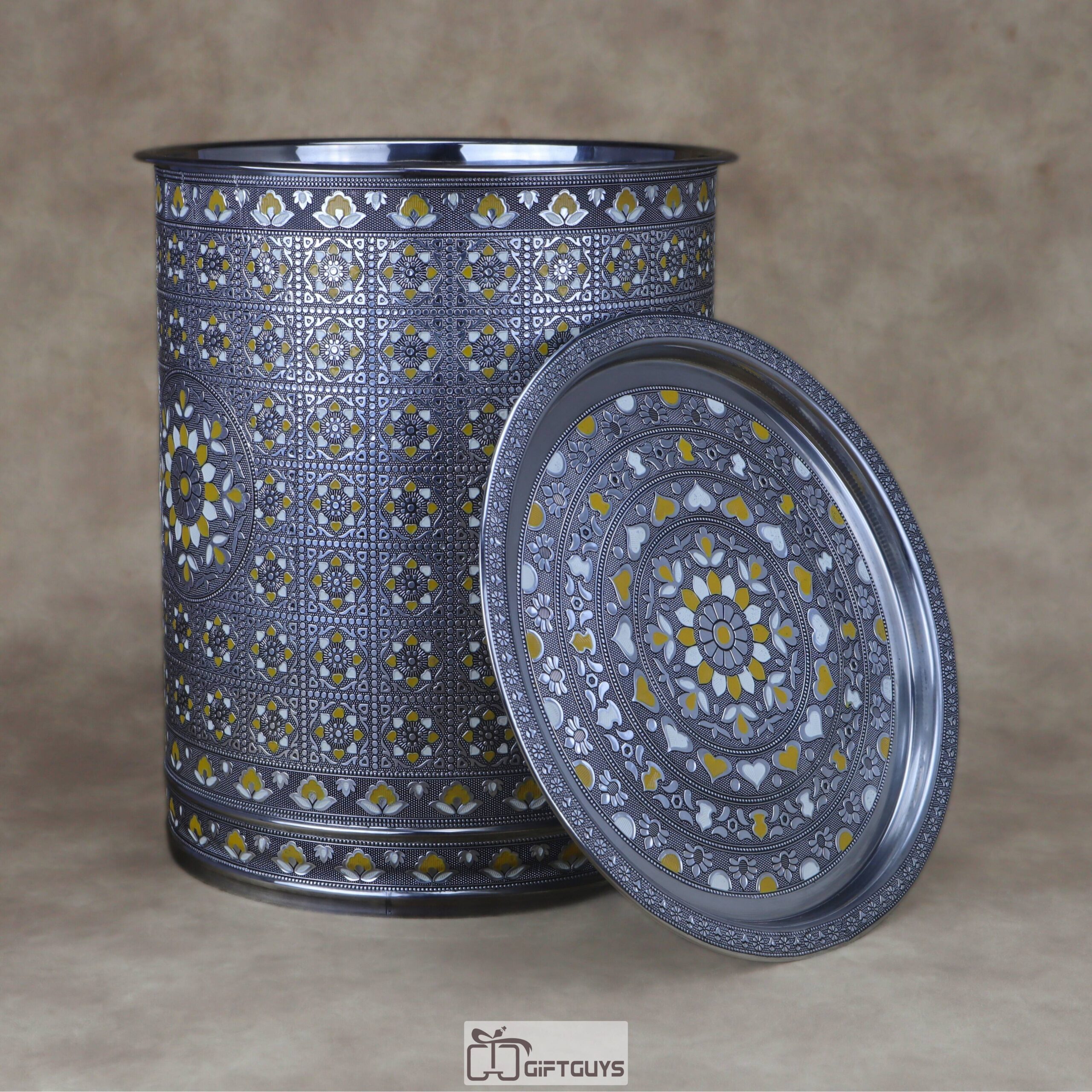 πŸ’› Large Meenakari Steel Storage Container (Yellow/White)