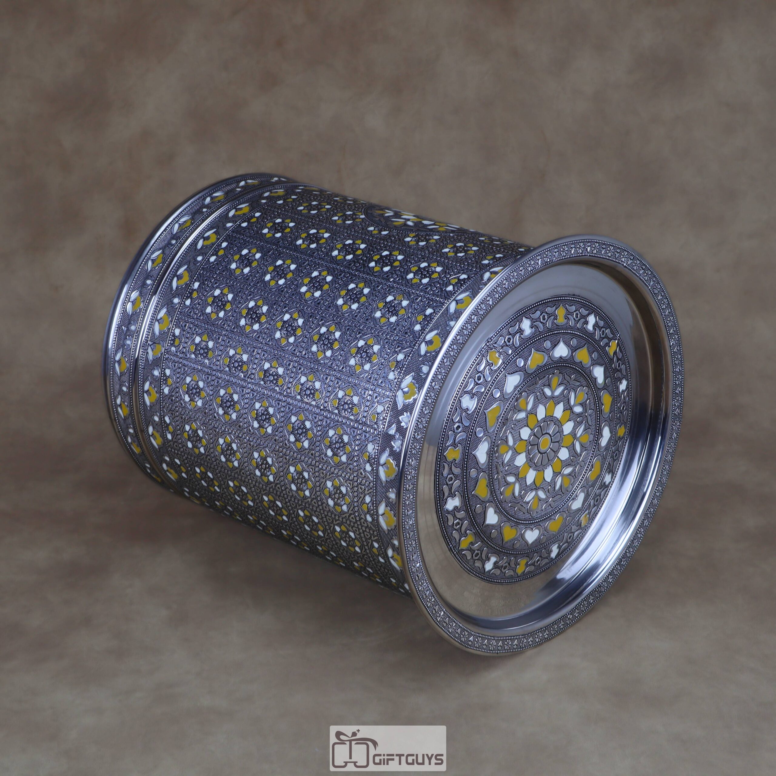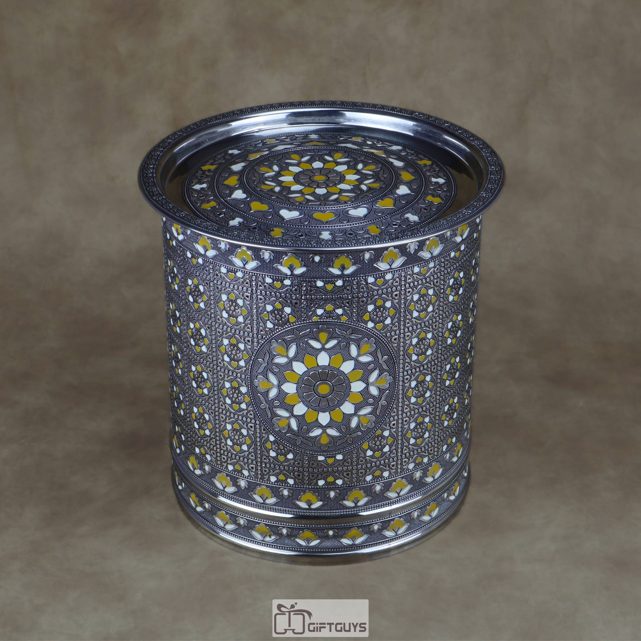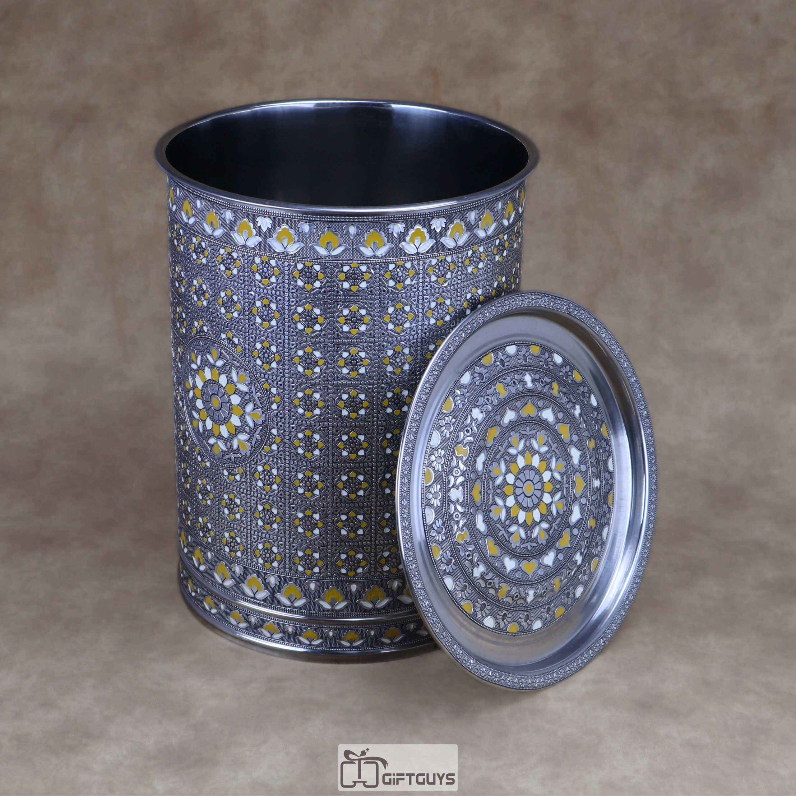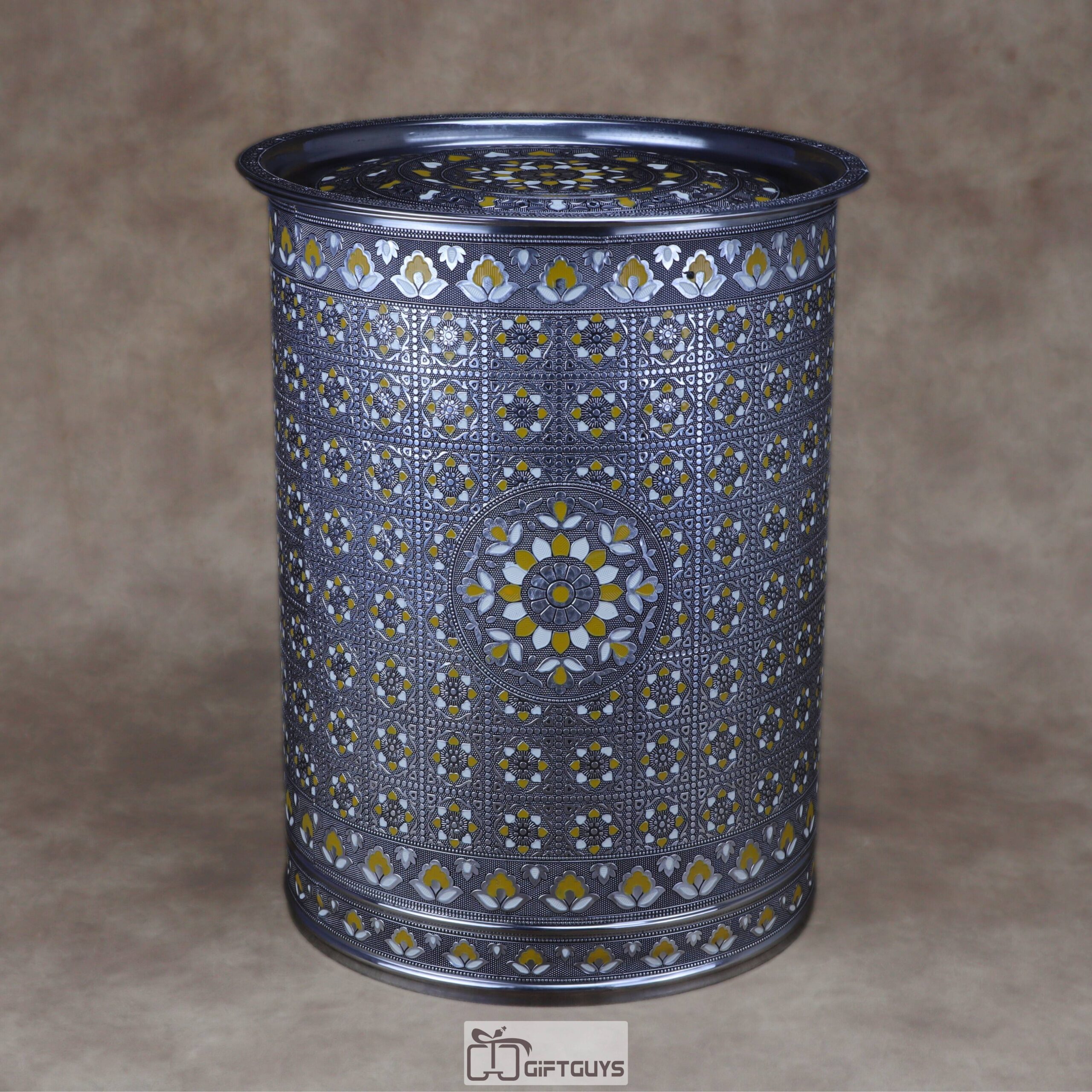 πŸ’› Large Meenakari Steel Storage Container (Yellow/White)
