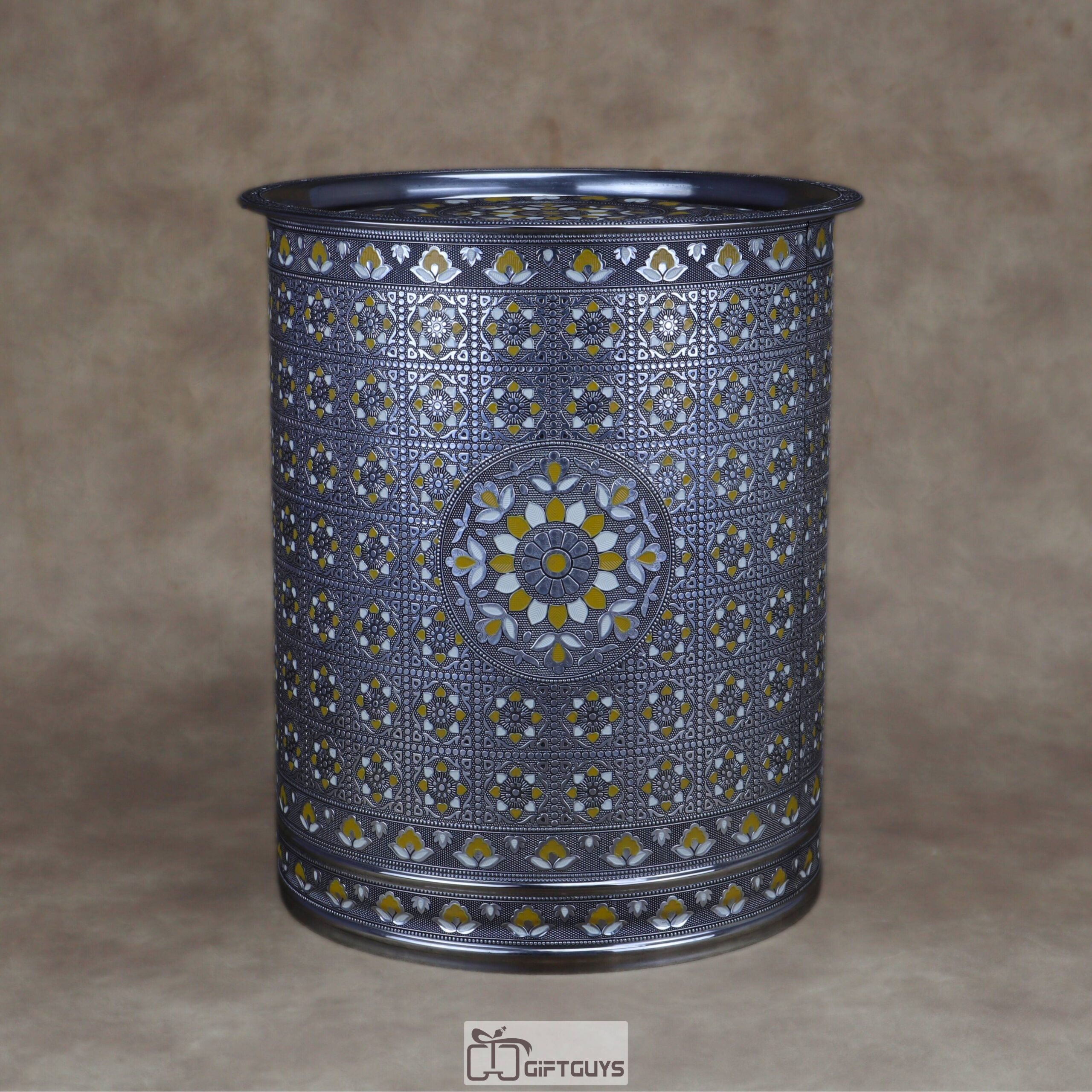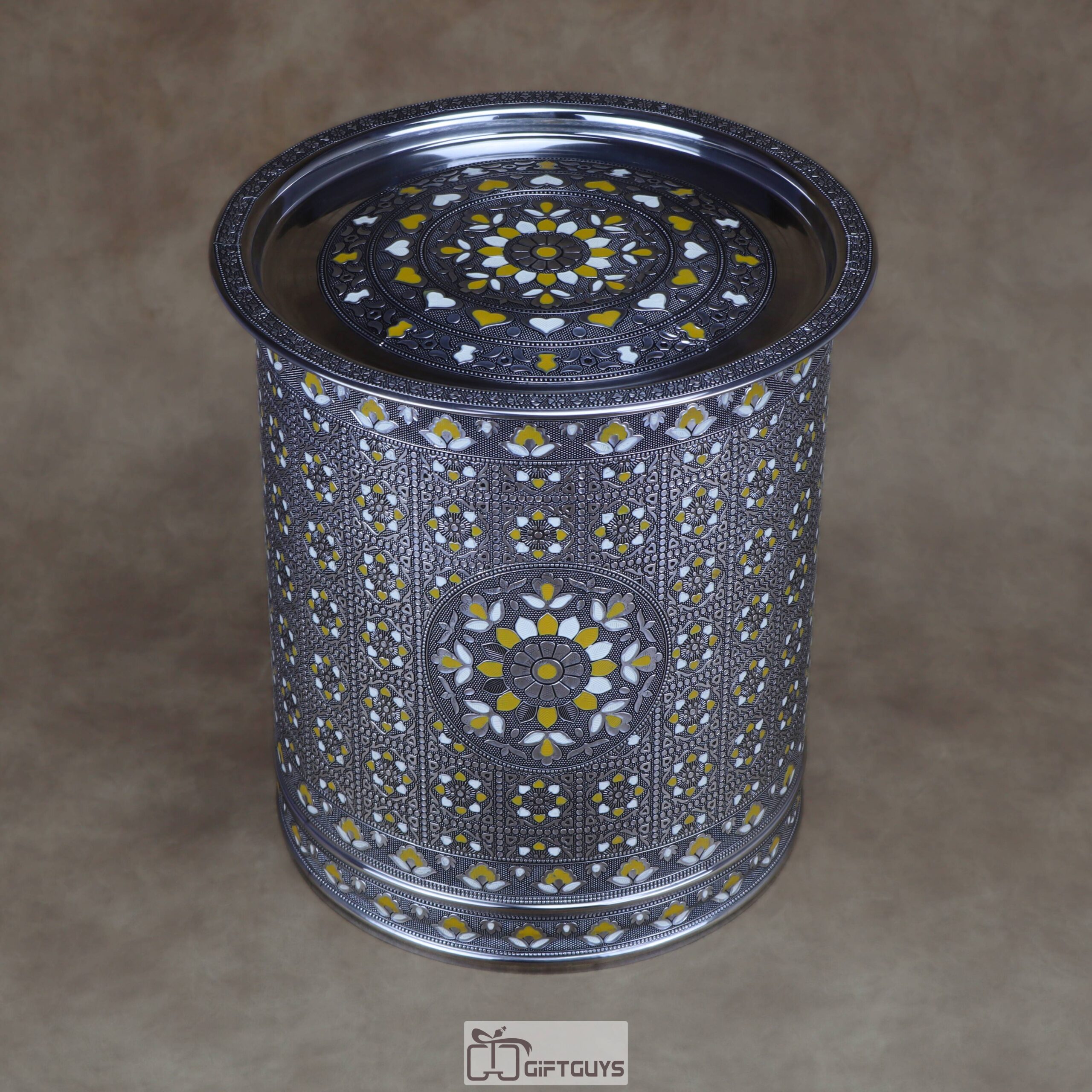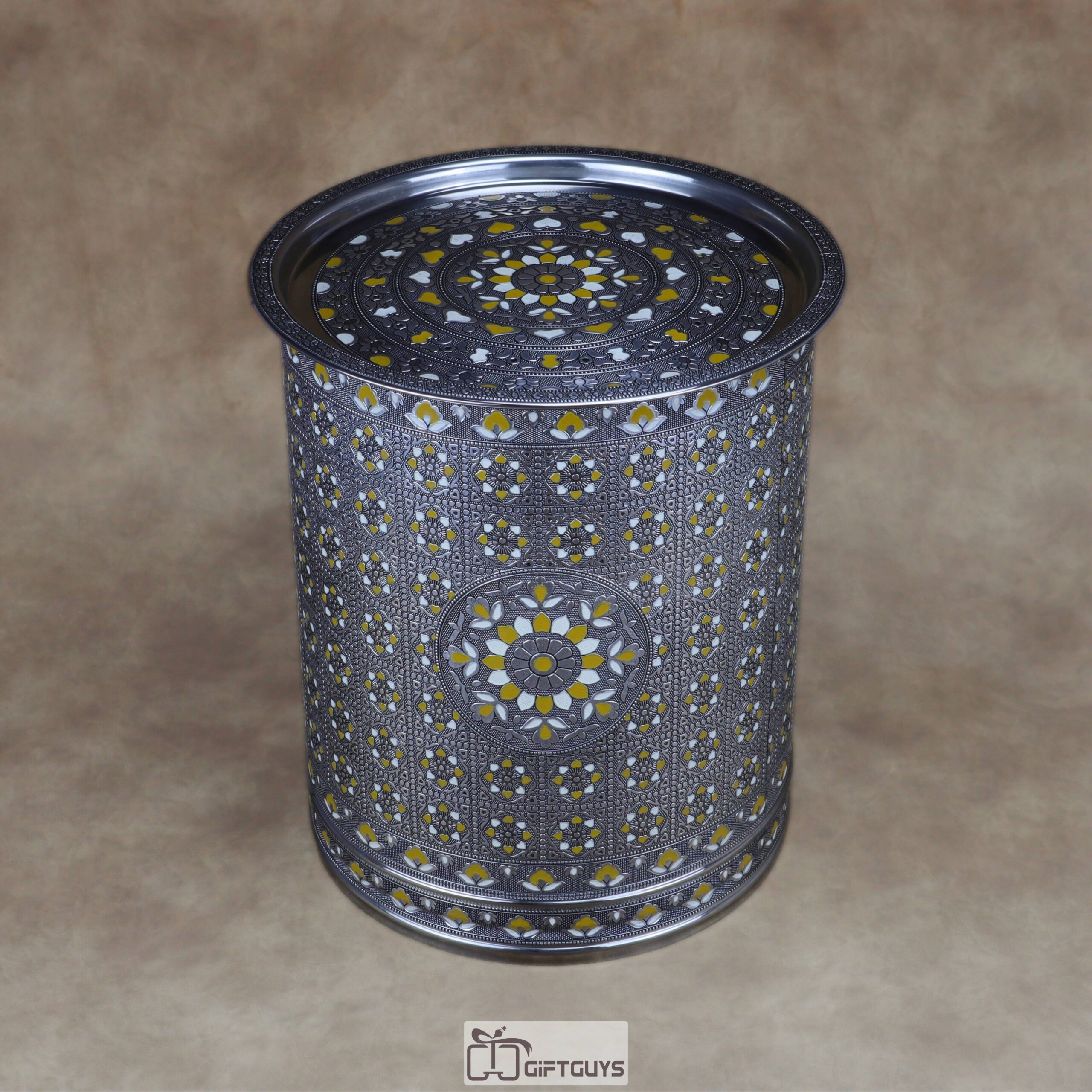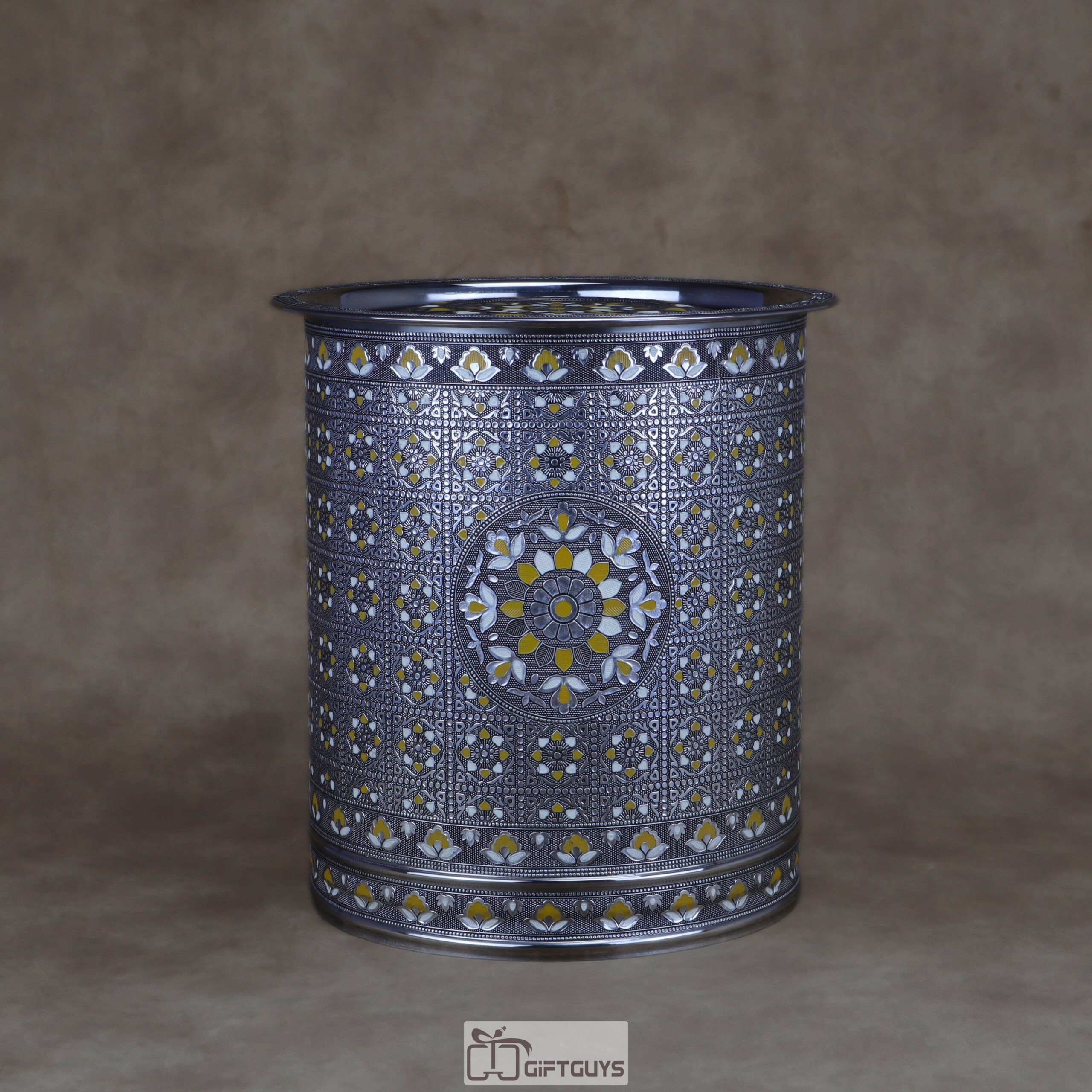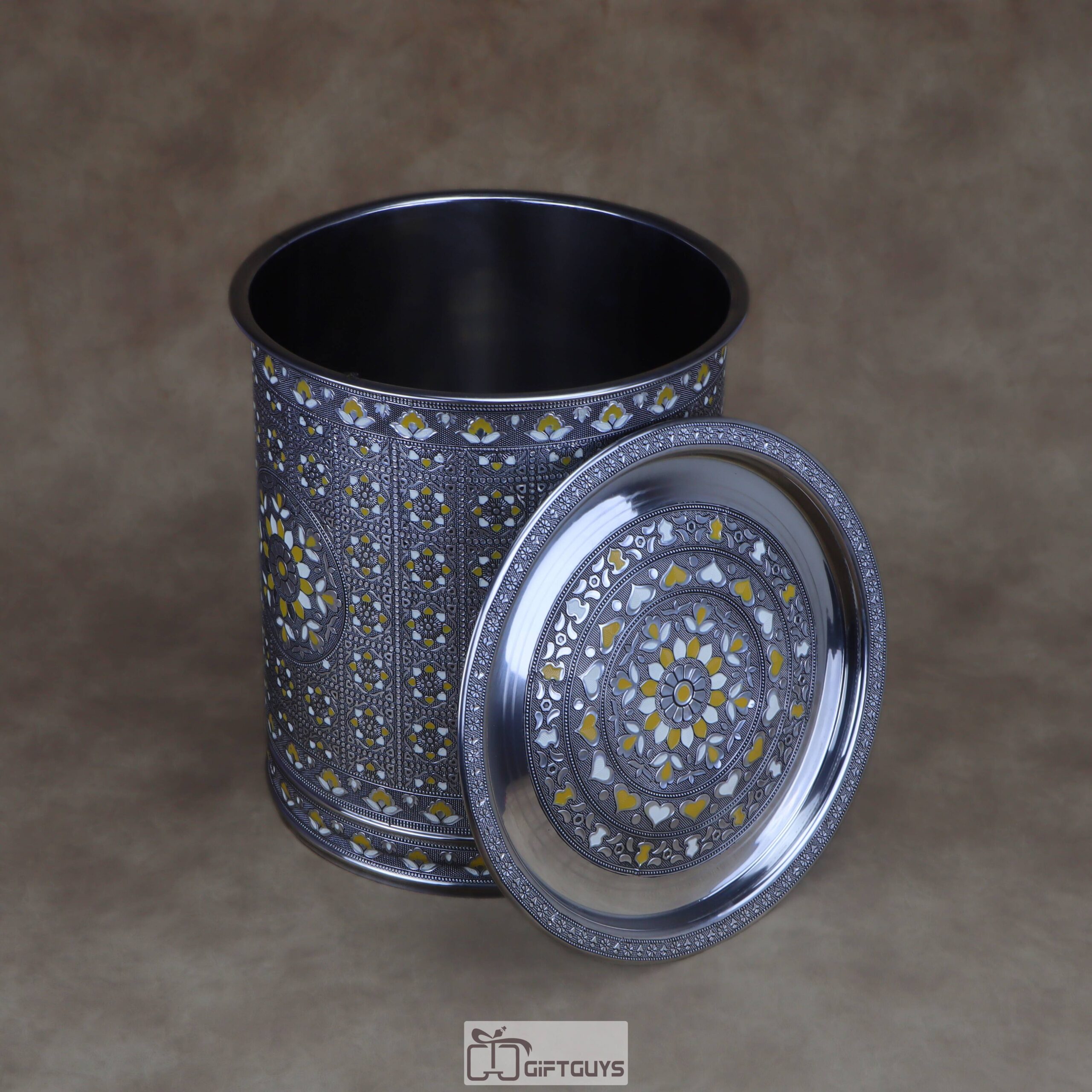 πŸ’› Large Meenakari Steel Storage Container (Yellow/White)