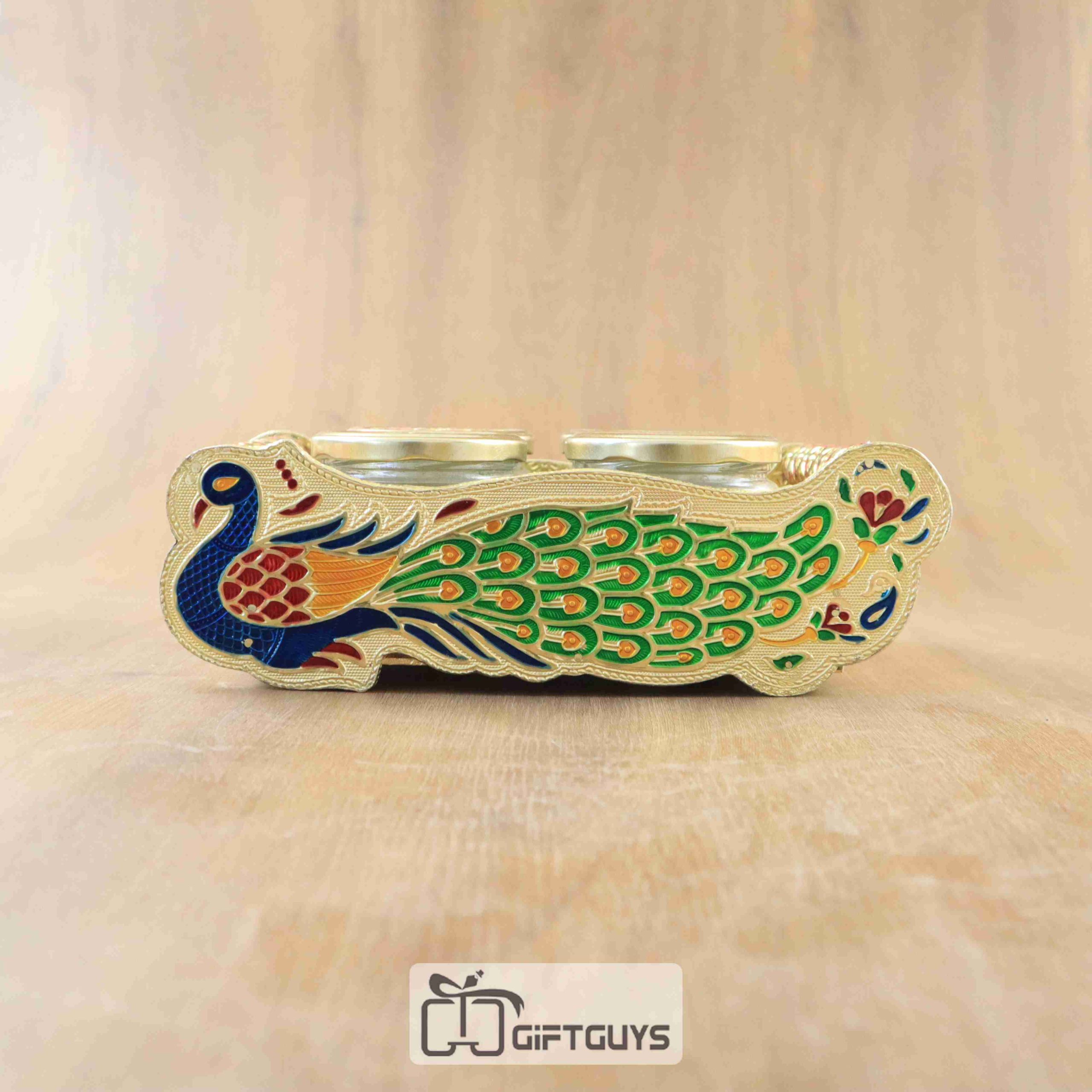 Meenakari Peacock Designed Tray With 4 Jar