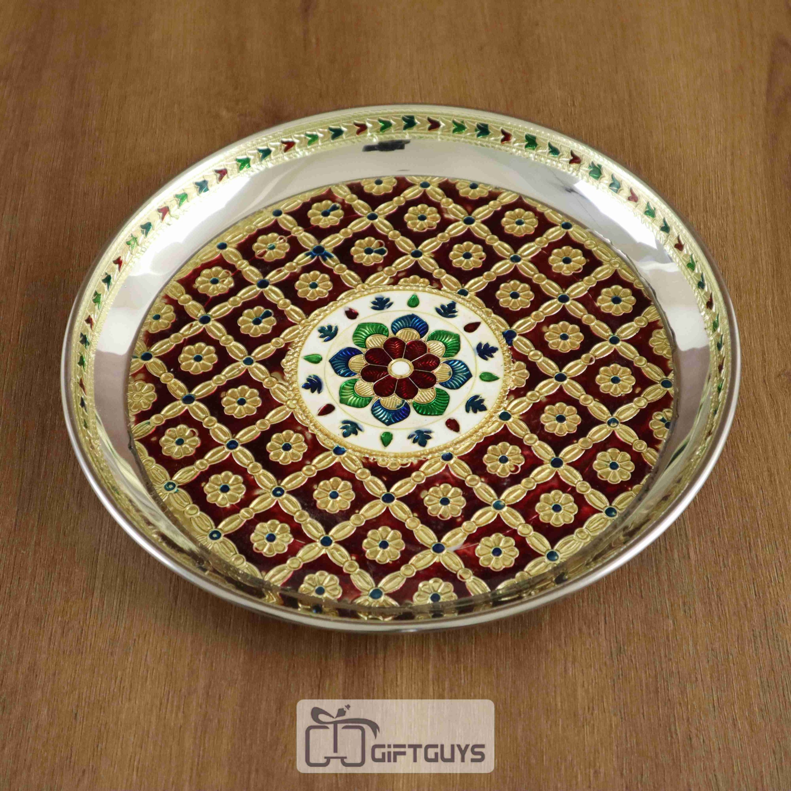Meenakari Pooja Thali – 9 Inch Handcrafted Steel Plate with Traditional Floral Design
