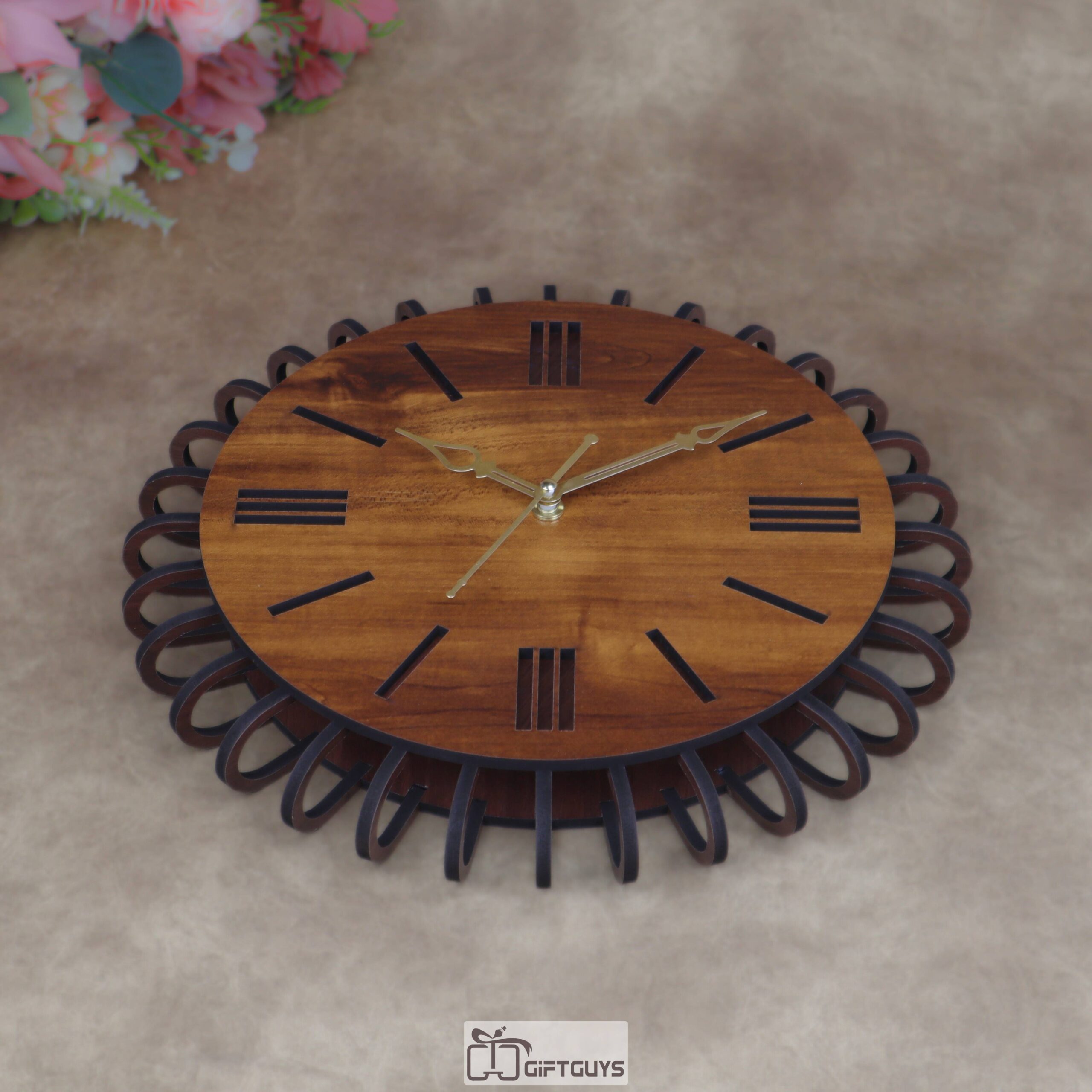 Premium Quality: πͺ΅ Made from durable, laser-cut wood, the clock face boasts elegant etched Roman numeral markers and sophisticated gold-tone hands.