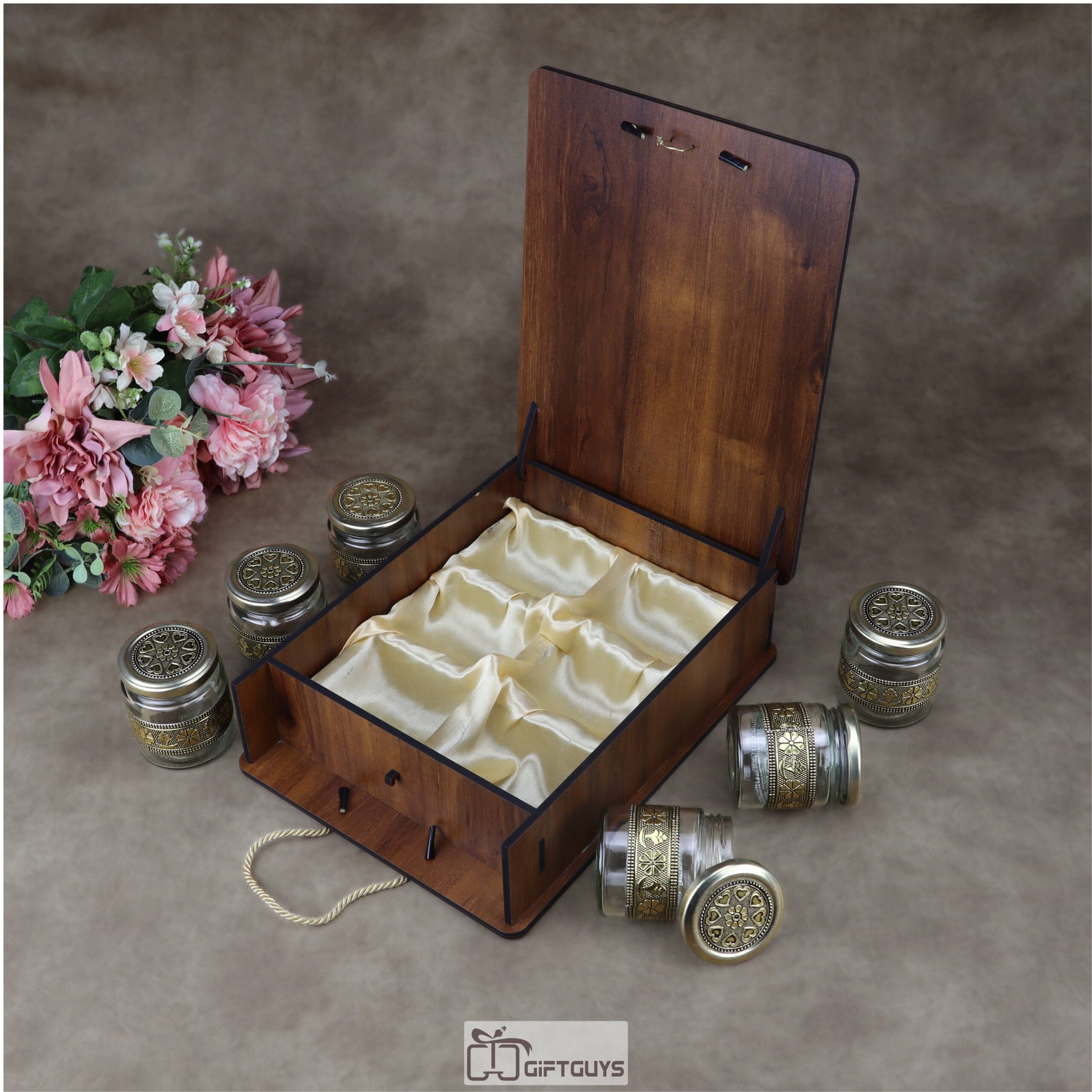 Satin-Lined Interior: The jars are nestled in a luxurious gold satin-finish lining, ensuring they remain secure and protected while adding a touch of royal flair. ✨