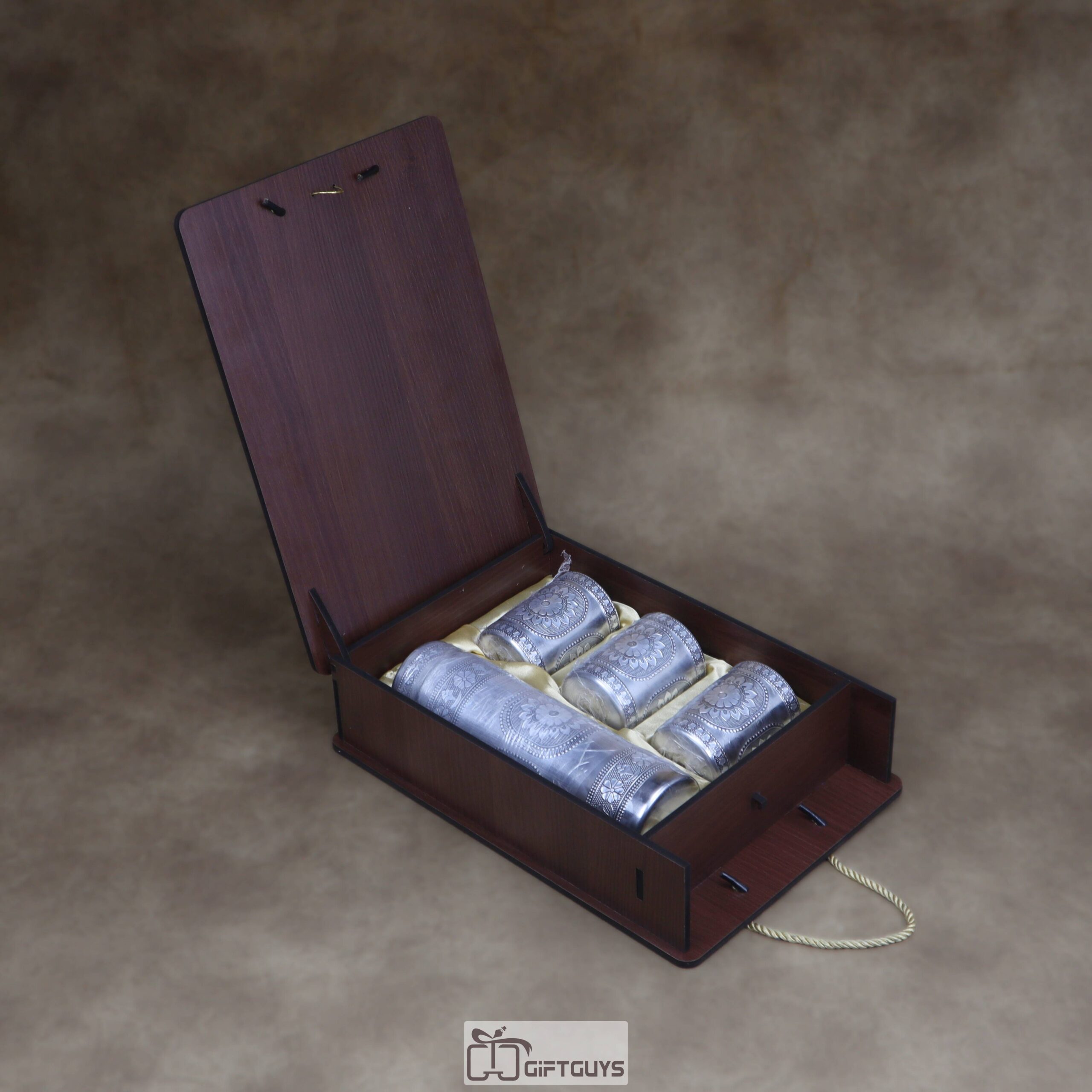 Elevate your hydration style or gift a piece of timeless heritage with this exquisite Oxidized Steel Drinkware Set. Housed in a premium wooden box, it’s where traditional artistry meets modern utility. 🌟