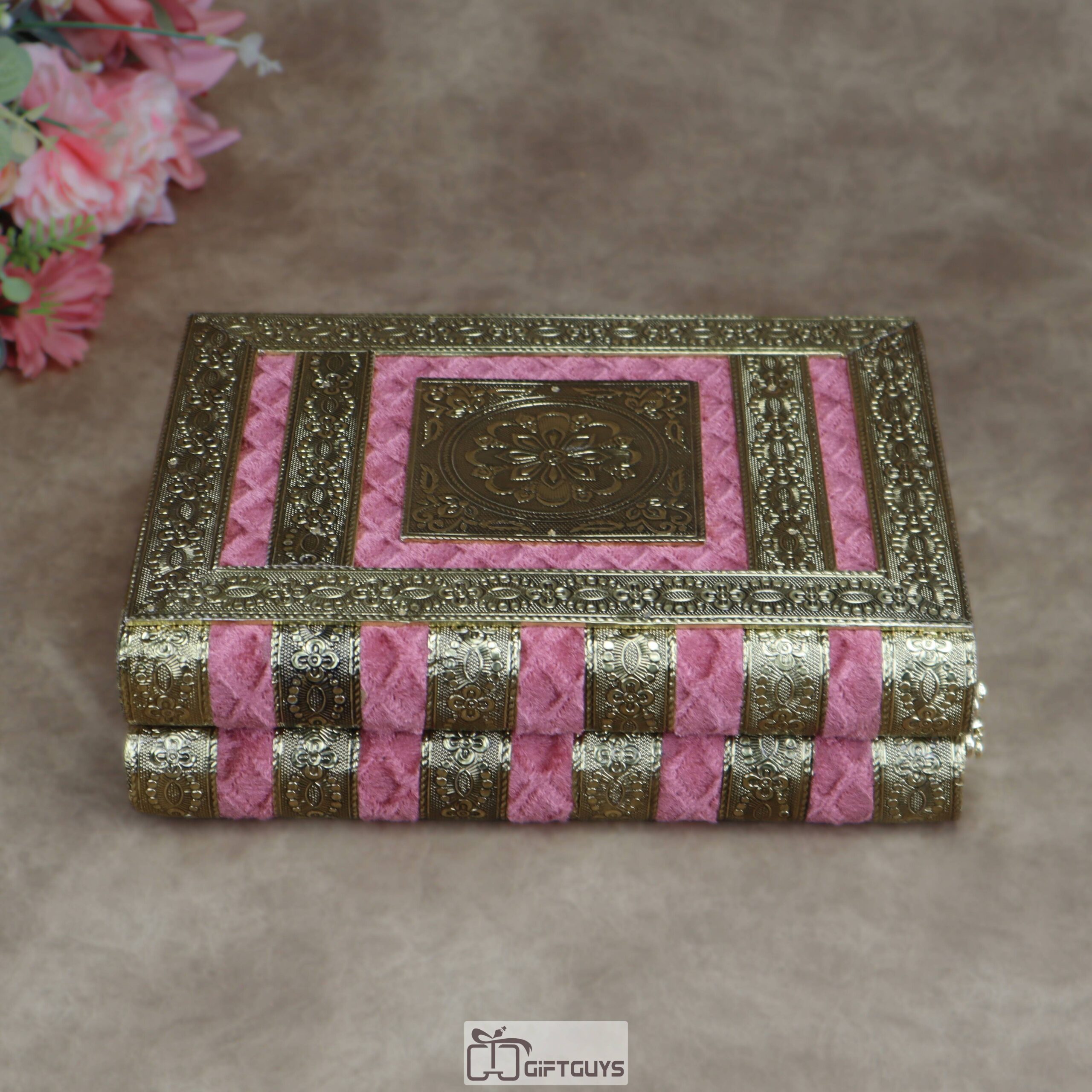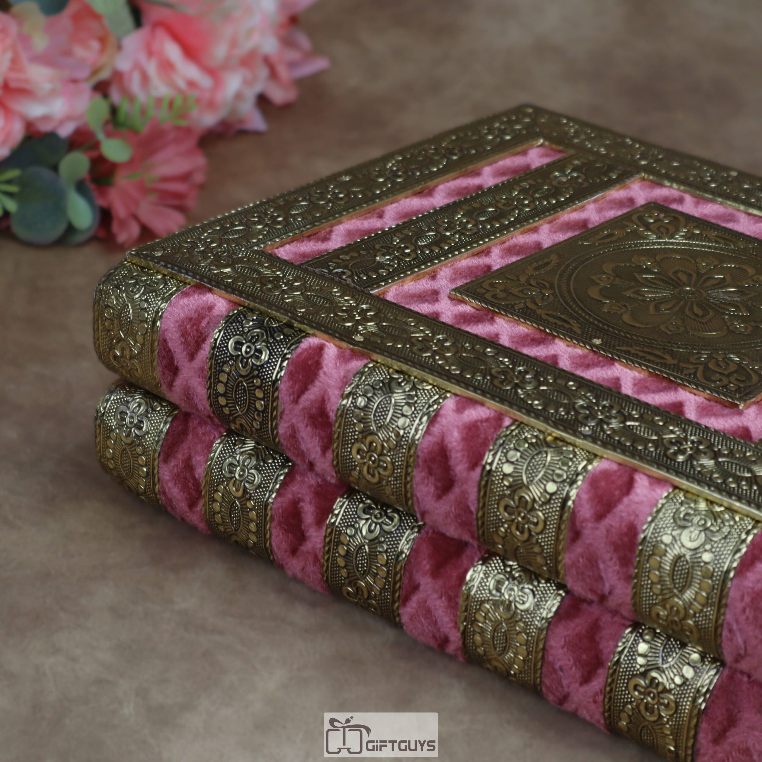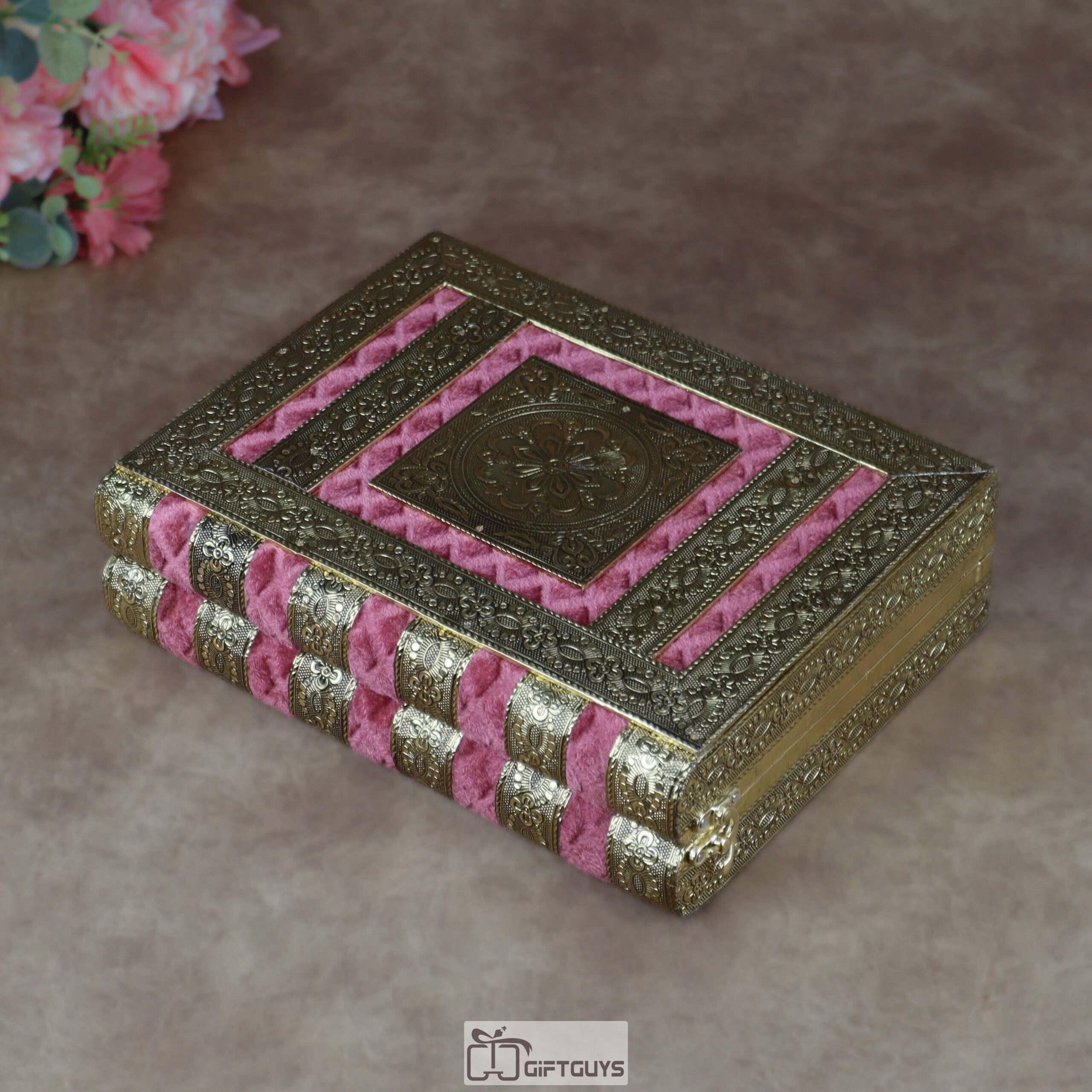 • Luxurious Velvet Finishing: The exterior features high-quality, quilted-pattern pink velvet, offering a soft tactile feel and a regal aesthetic.