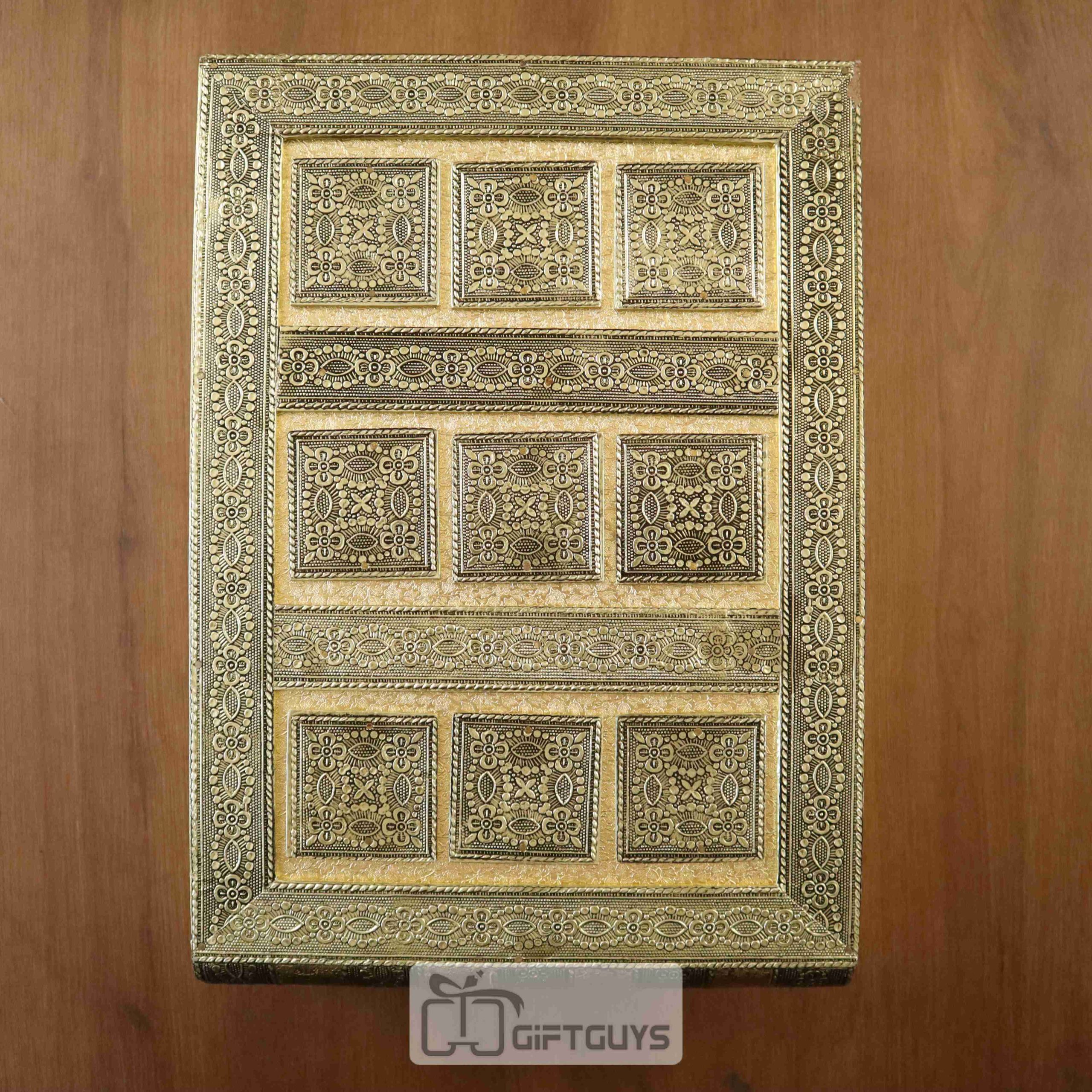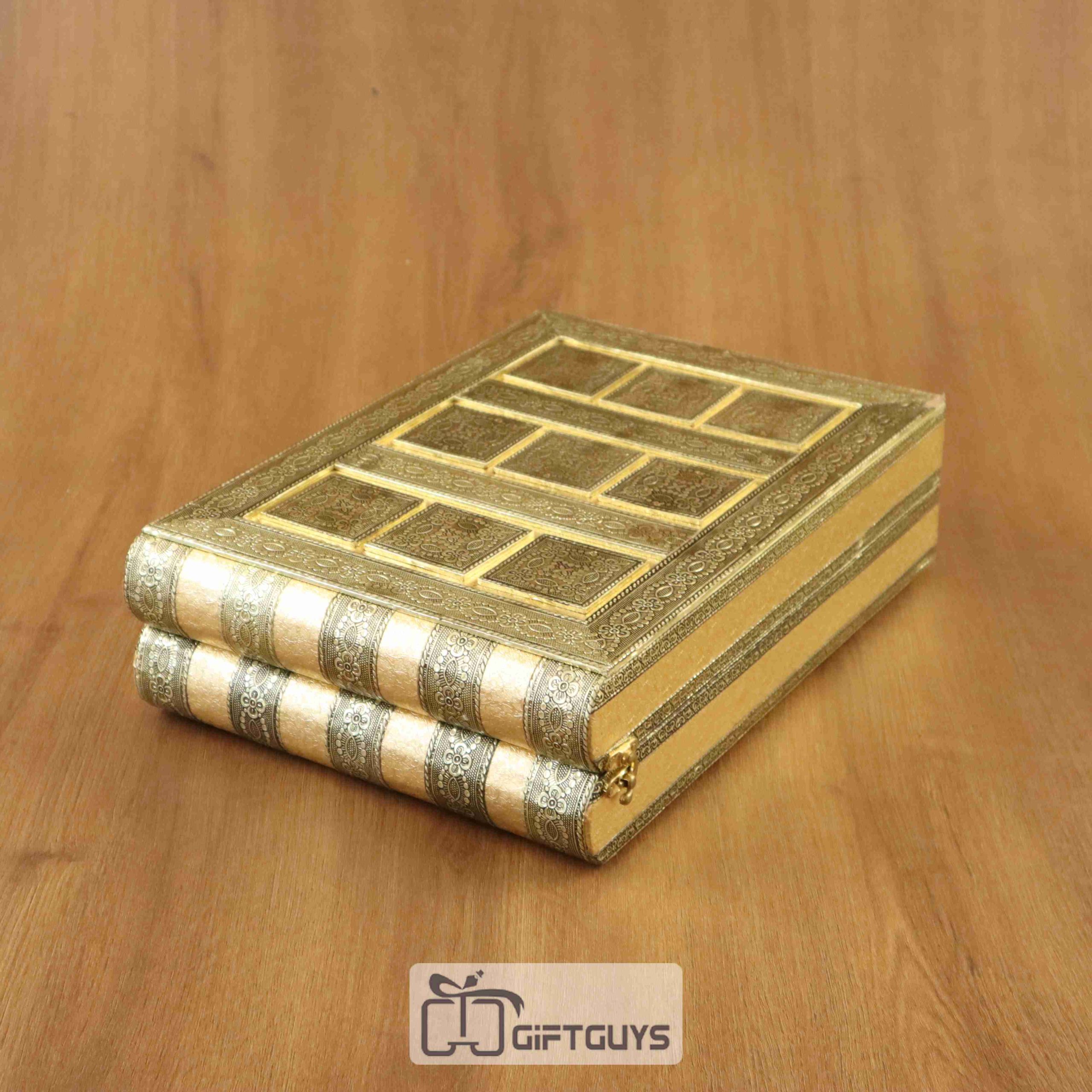๐ Elegant Design: Classic golden rectangle box with embossed border pattern.