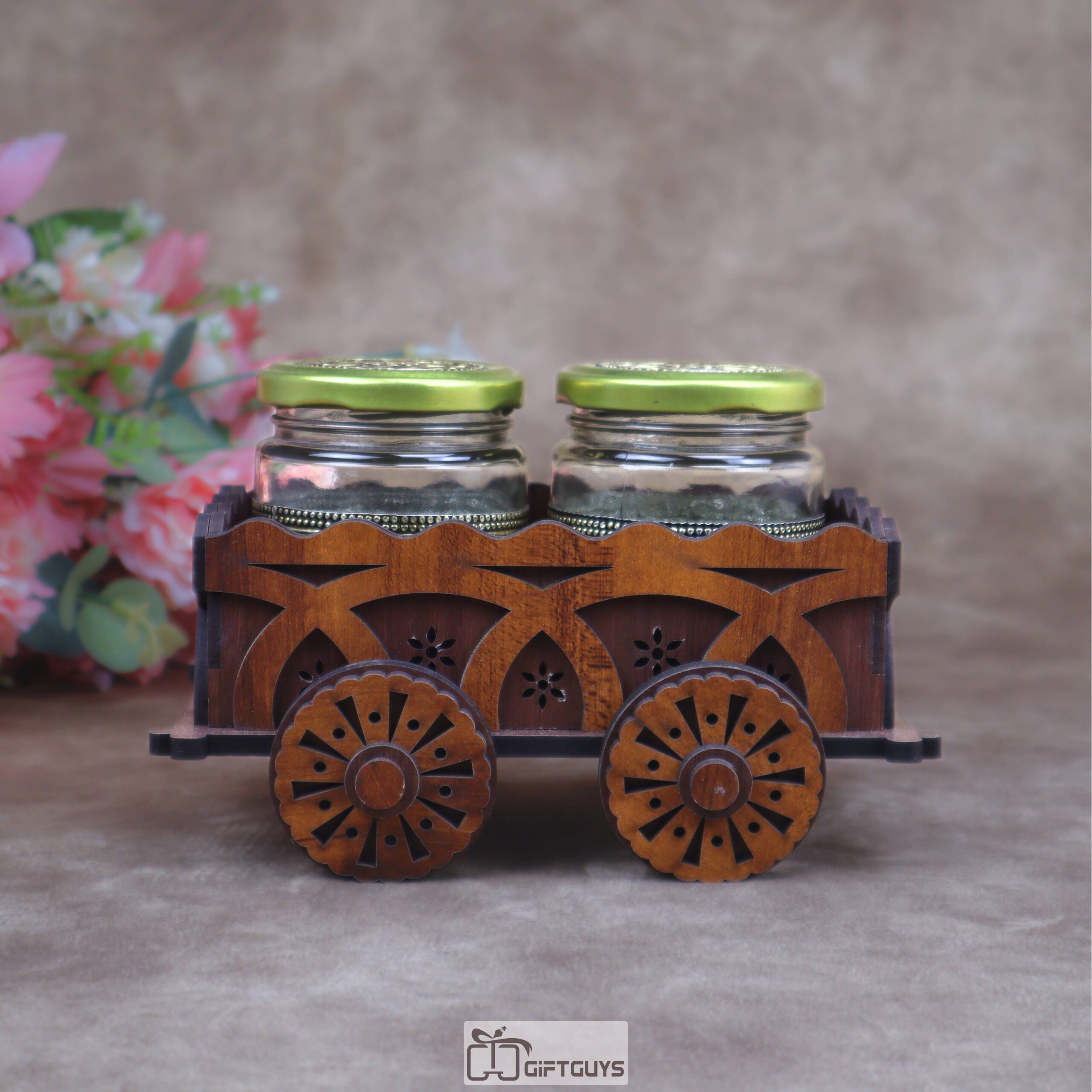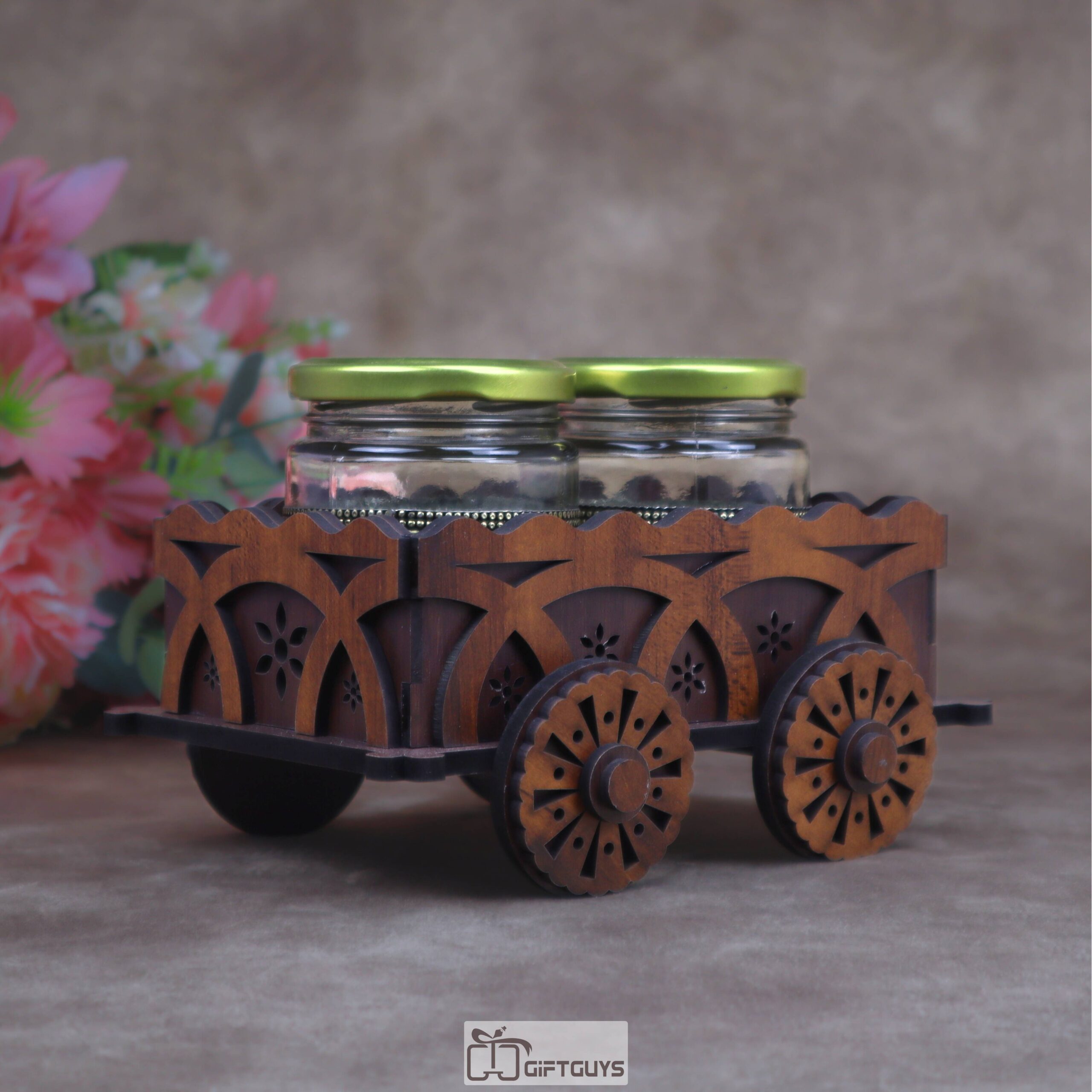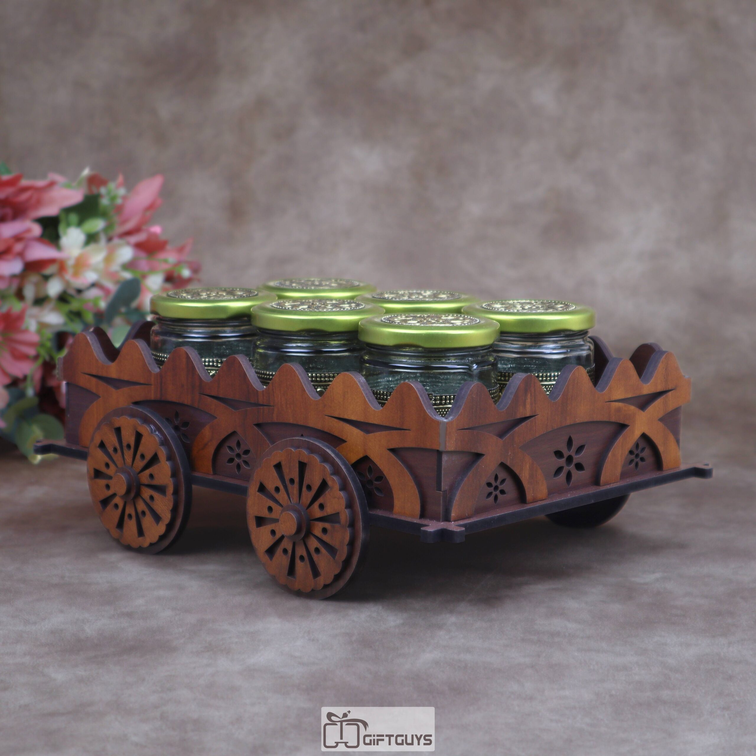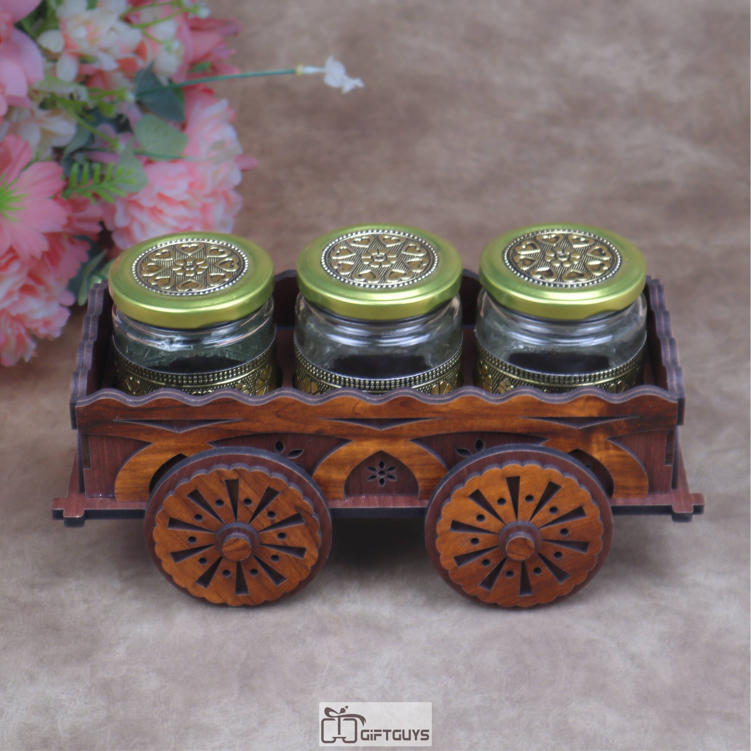 Ultimate Serving Set: 🌟 The cart features elegant glass jars, perfect for serving a wide array of dry fruits, condiments, fennel seeds (mukhwas), or storing spices.