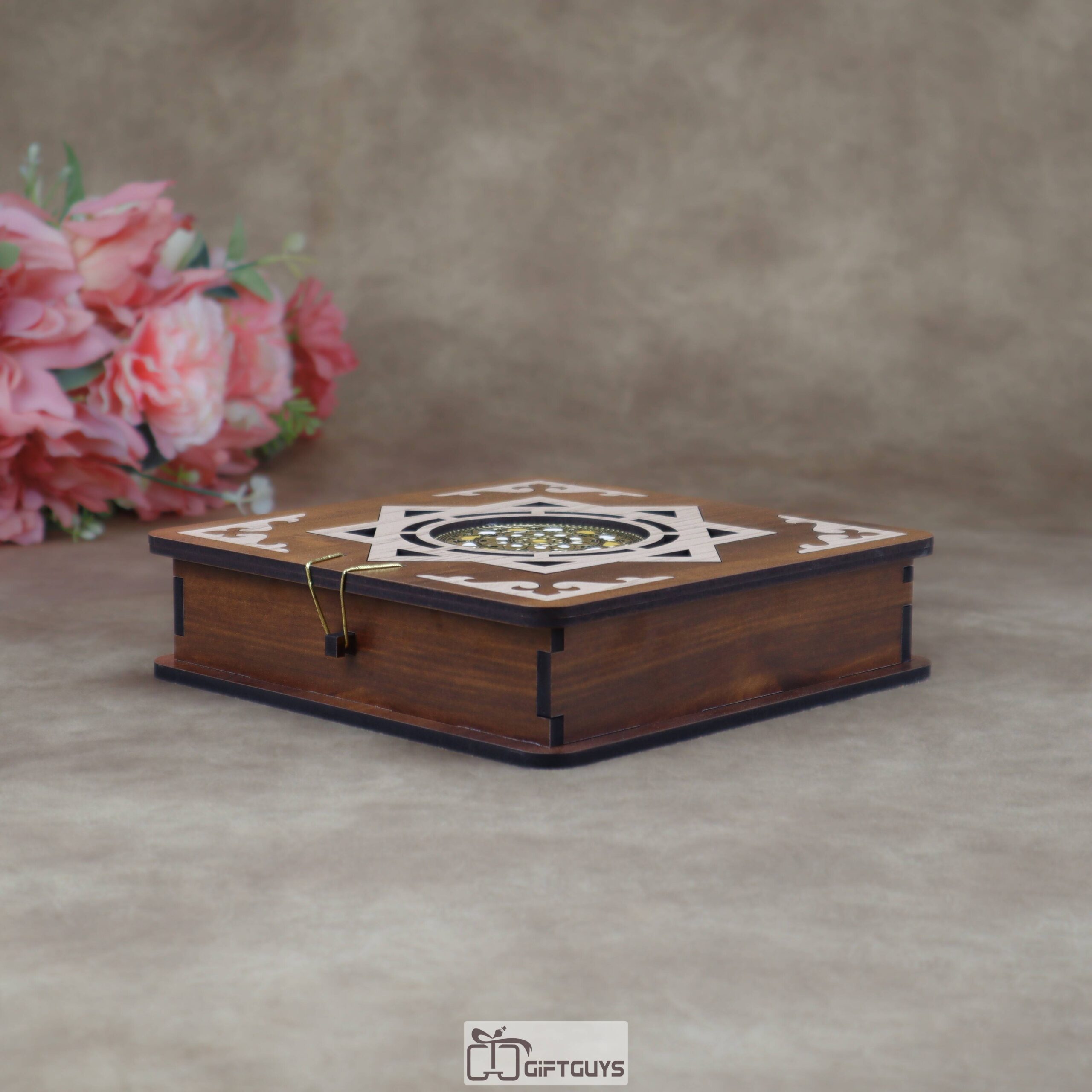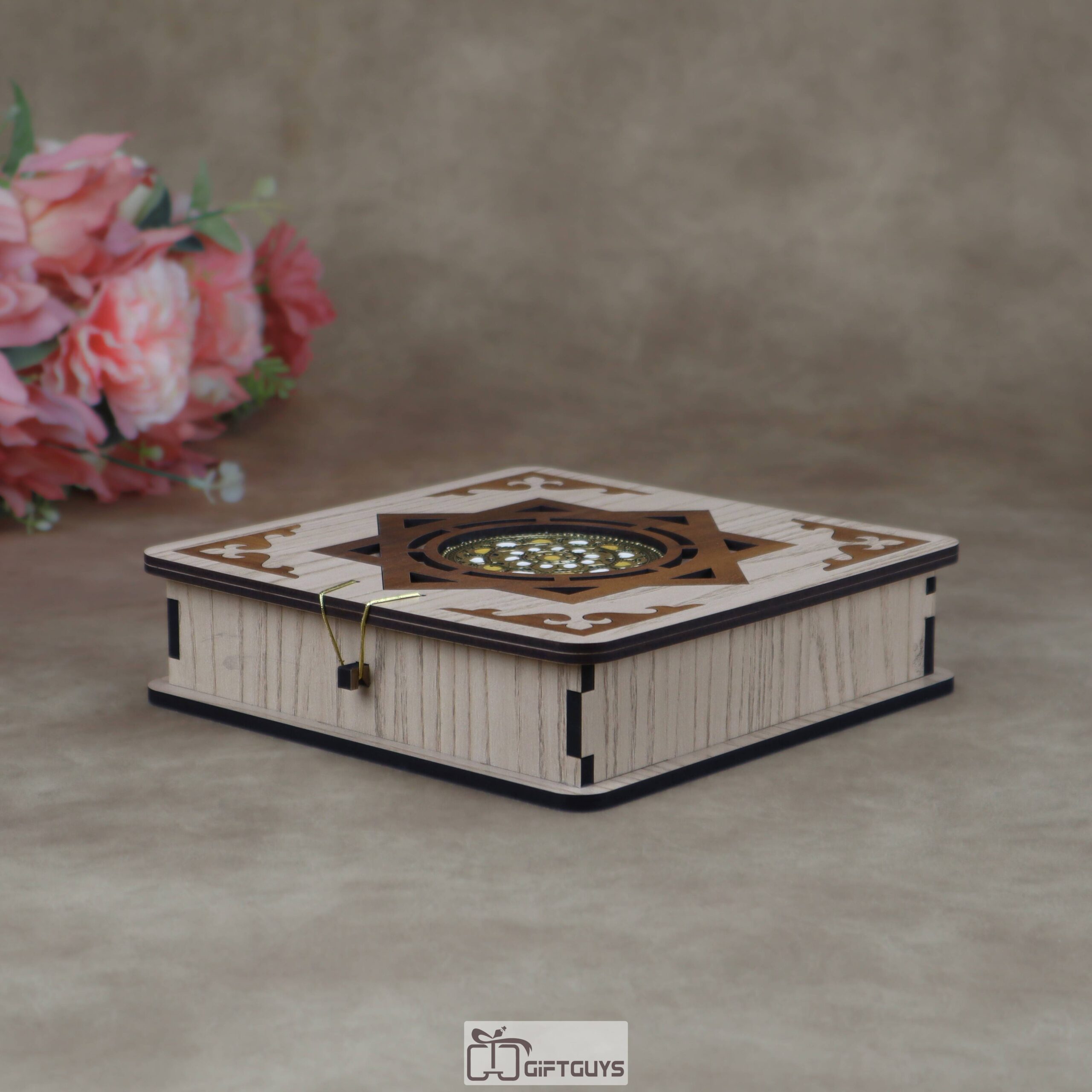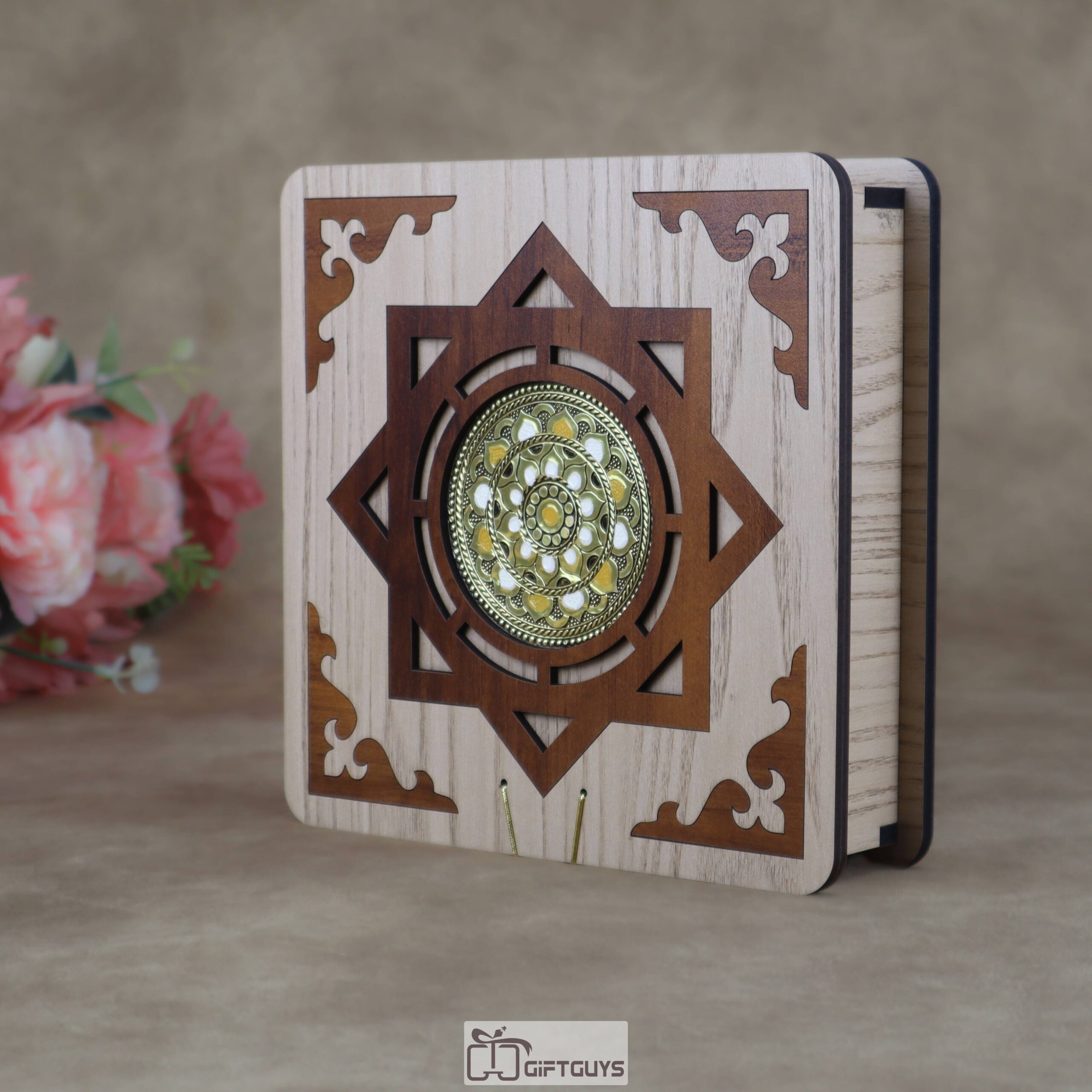 Traditional Aesthetic: Each box features a beautifully laser-cut top with a traditional eight-pointed star motif and a central embossed metallic emblem, lending it a royal, antique feel.