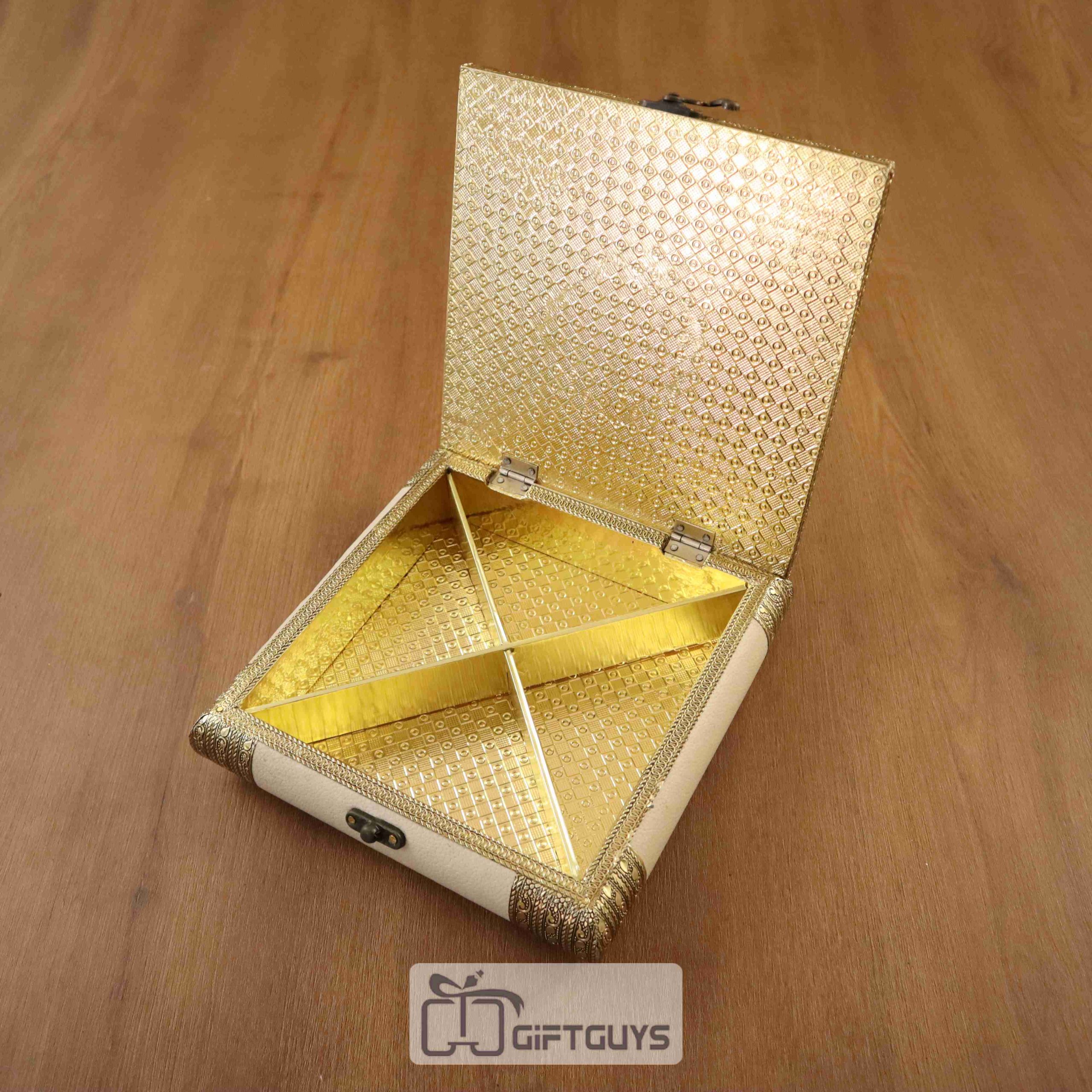 Wooden Handicrafted Dryfruit Box With 4 Compartment 8 X 8 inch