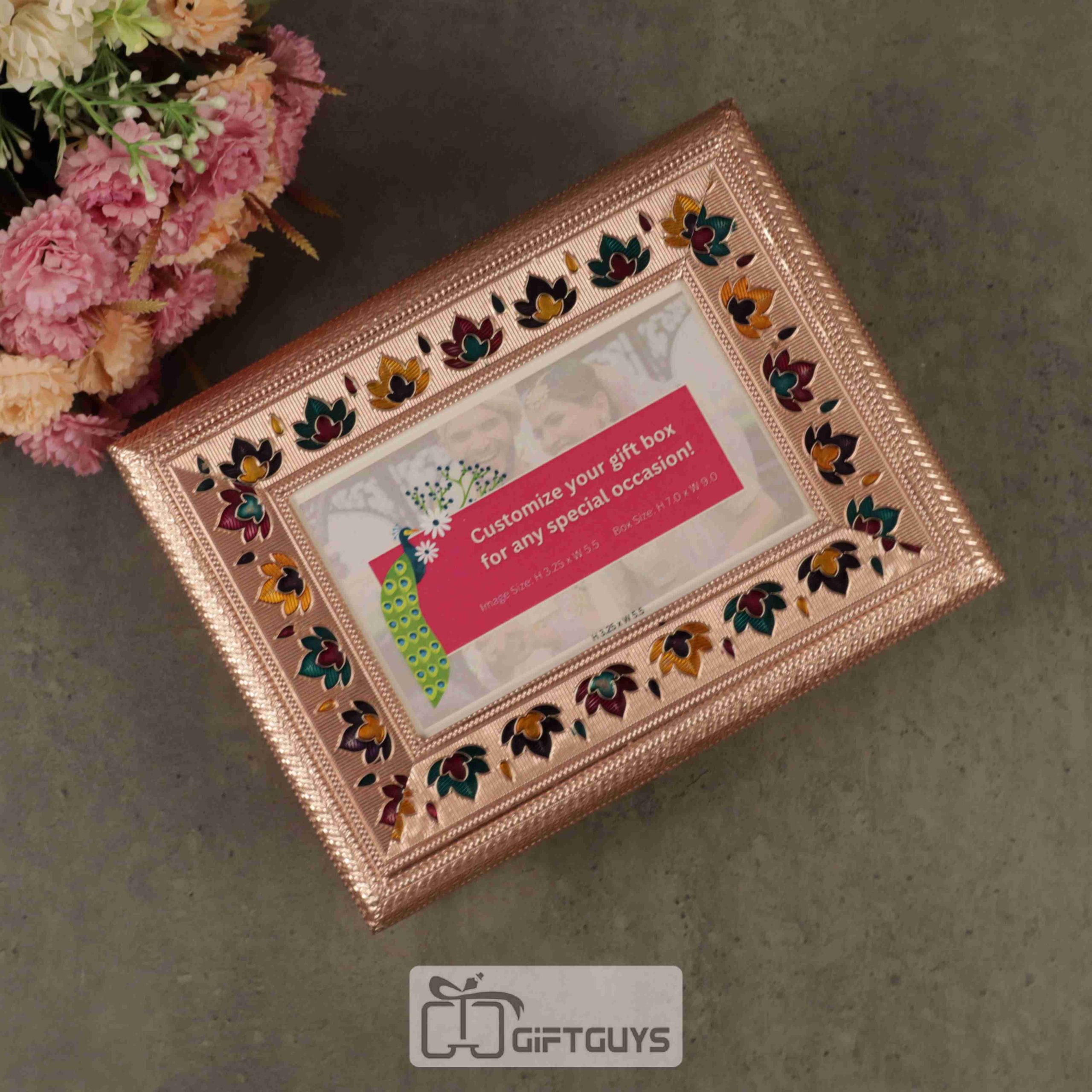 Meenakari Personalized Wooden Dry Fruit Box – 9×7 Inch | Custom Photo Gift Box