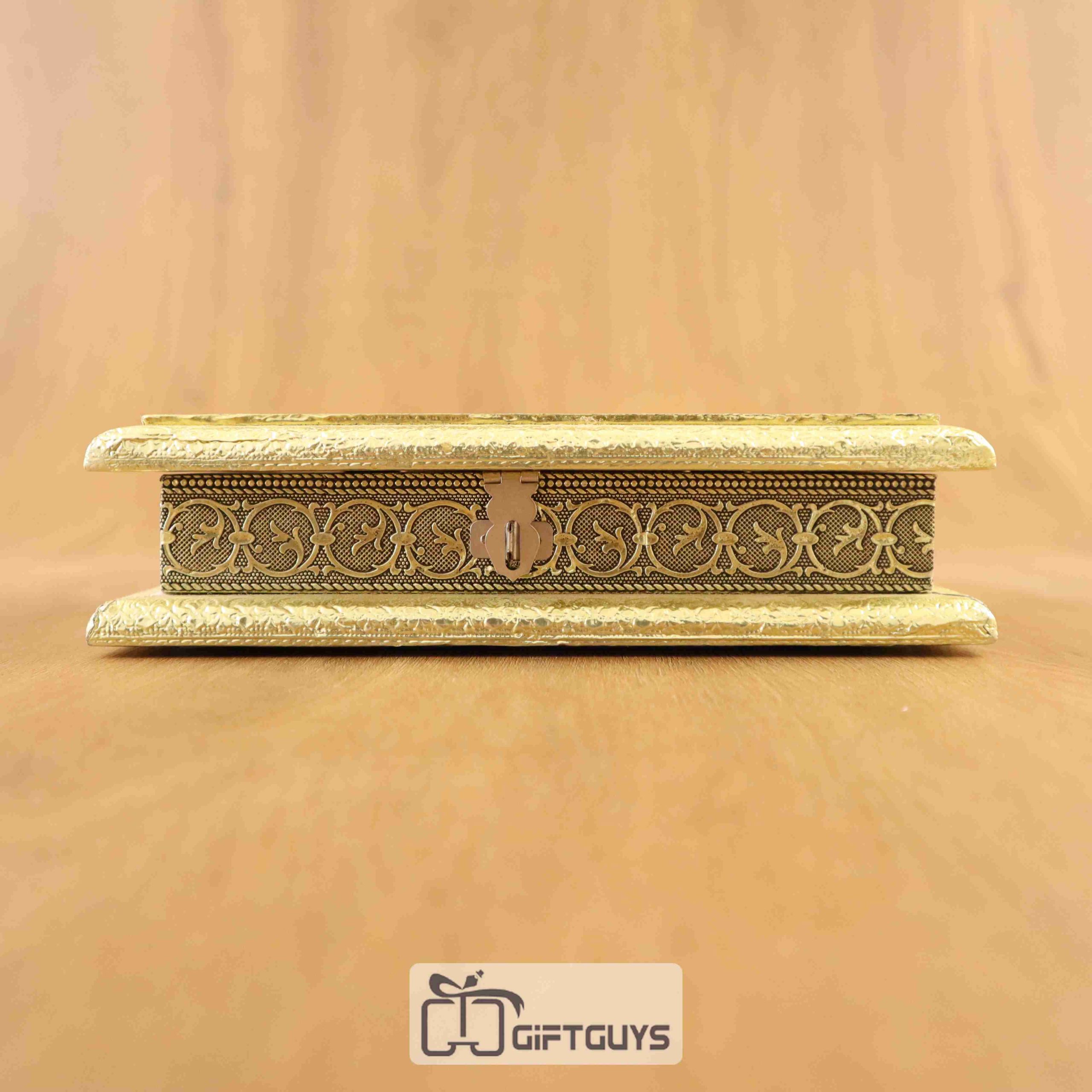 A Wooden Oxidised Dry Fruit Box is a beautifully designed storage container made from high-quality wood, showcasing traditional craftsmanship. Artisans carefully carve and shape the wood, often incorporating intricate details such as floral patterns, geometric designs, or cultural motifs. The box is designed to store dry fruits, nuts, and snacks, offering both functionality and aesthetic appeal. Its smooth, polished surface and fine finishing make it a perfect decorative piece for the home. Available in various sizes and styles, this handcrafted box reflects the skill and artistry of the craftsmen, adding a touch of elegance and charm to any setting.